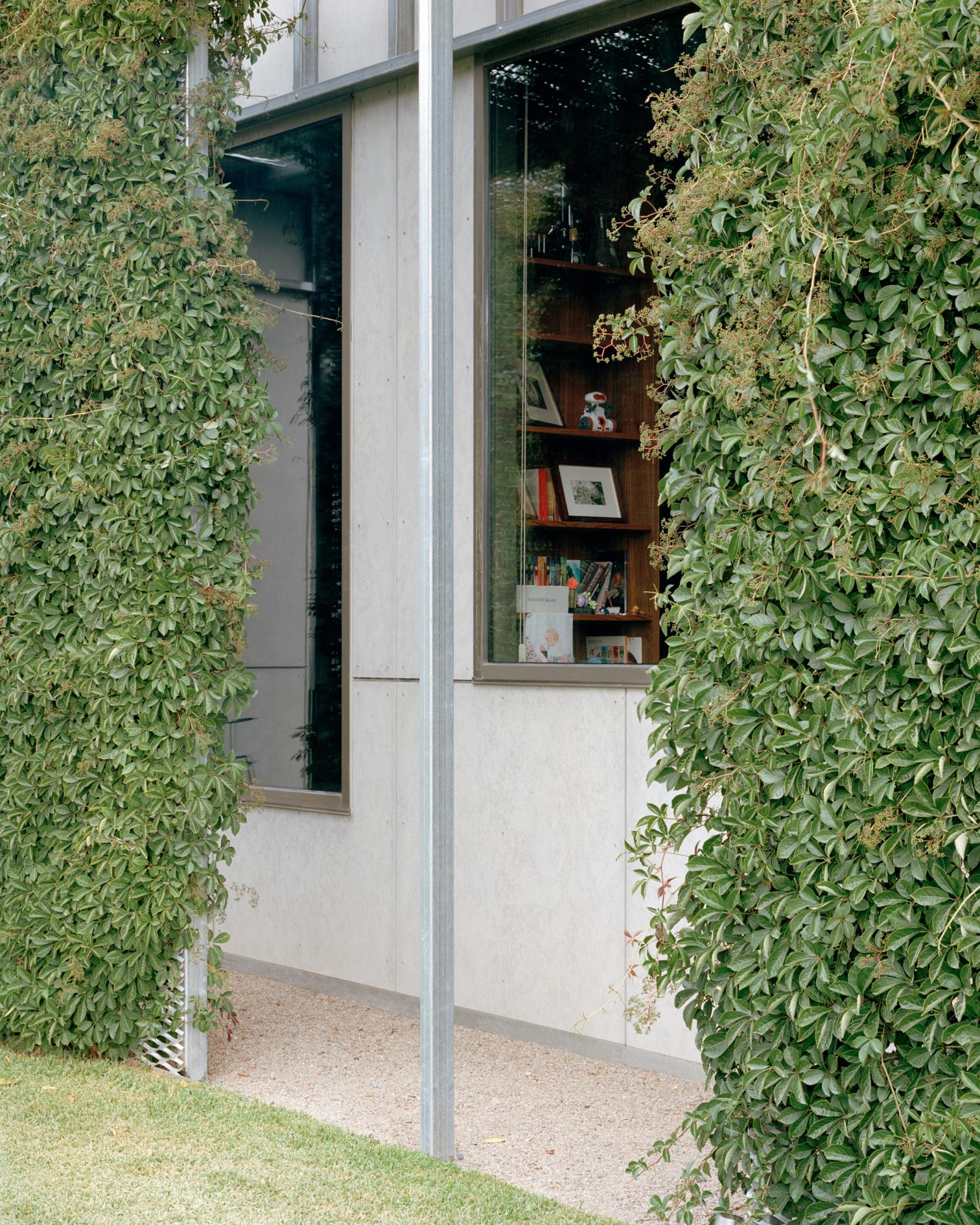 La identidad del proyecto surge de una estructura metálica cubierta por vegetación trepadora, que media entre interior y exterior, y los muros de hormigón intercalados que articulan los espacios. Esta celosía vegetal de hoja caduca, donde las enredaderas se entrelazan, filtra la luz y el viento, actúa como protección solar y aporta un carácter cambiante a lo largo de las estaciones, proporcionando sombra en verano y desapareciendo en invierno.