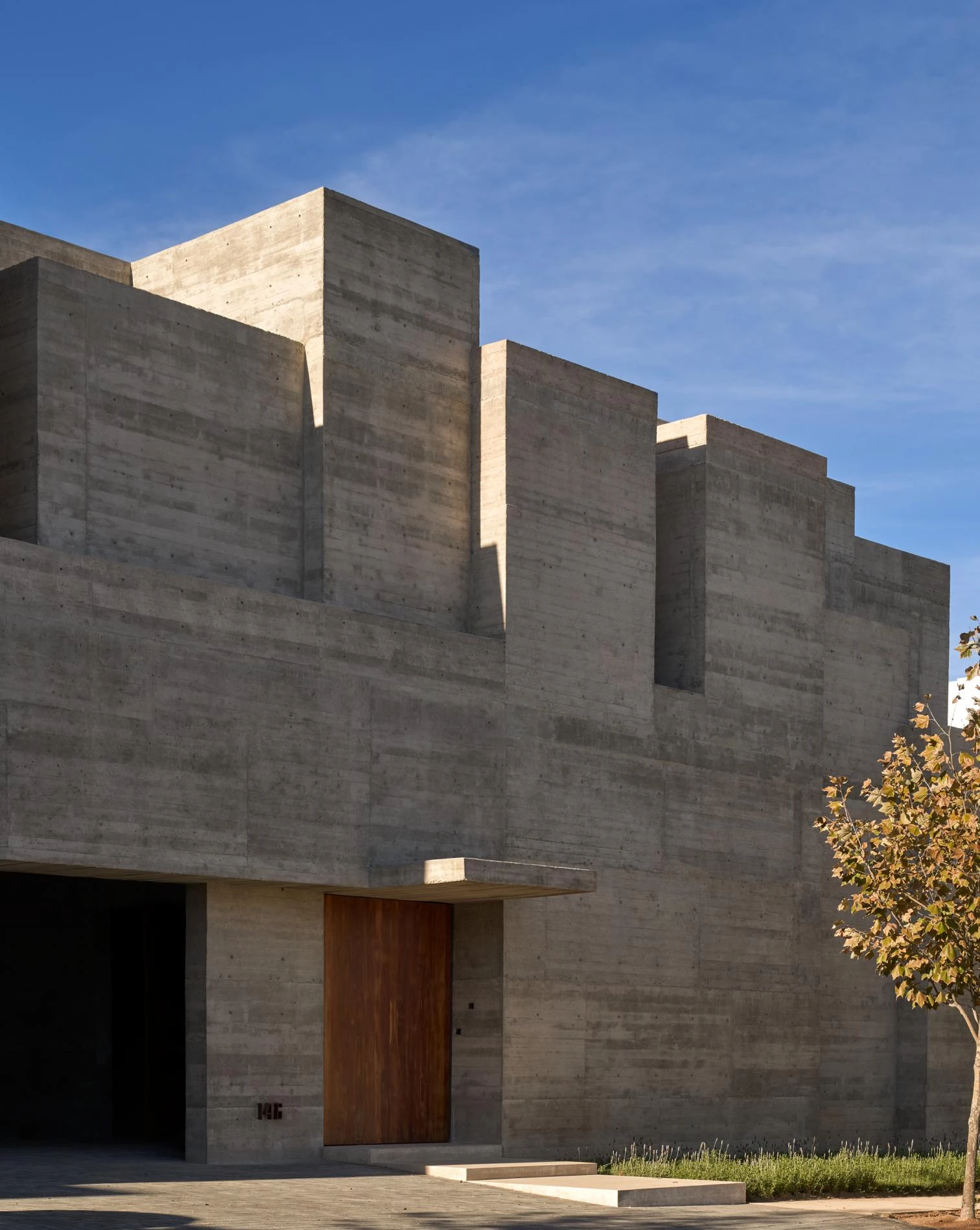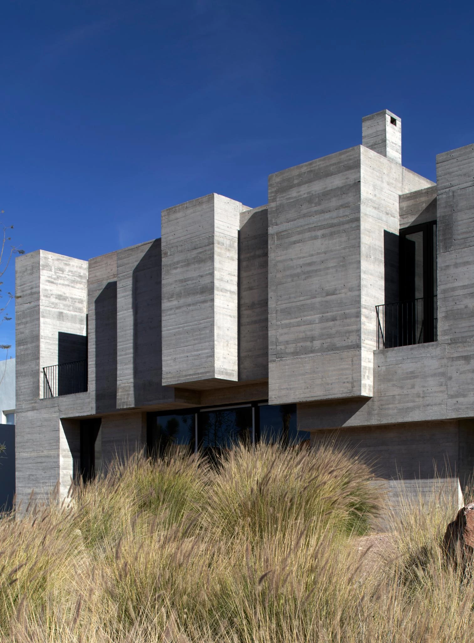 Junto al campo de golf La Loma, en la ciudad mexicana de San Luis Potosí, se sitúa esta casa de dos alturas esculpida en hormigón visto. Con una superficie de 800 metros cuadrados, la composición de volúmenes genera un juego de luces y sombras en diferentes alturas y amplitudes.