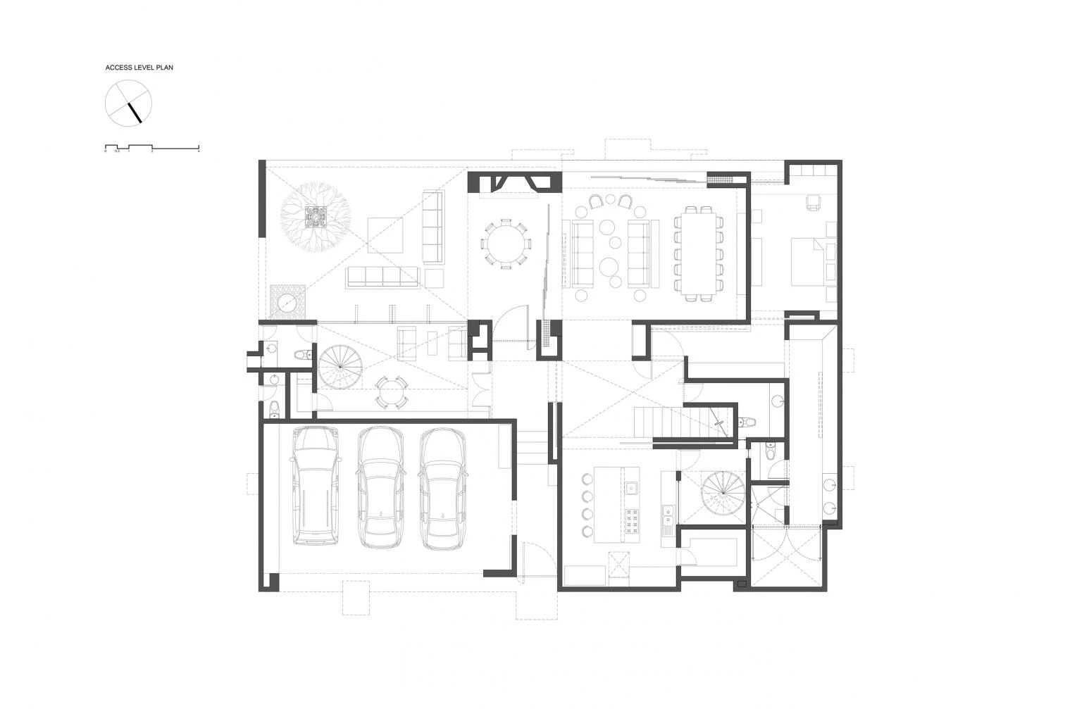 Aunque las estancias presentan ventanas, la casa mira hacia dentro. Las estancias se despliegan a lo largo de recorridos interconectados en una planta abierta que busca crear las sensaciones de conexión y espacio ampliado.