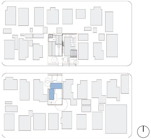 Así configurado, el nuevo volumen se enfrenta a otro edificio del mismo propietario: el estudio profesional dispuesto justo al otro lado de la calle y que, como la casa, también ha sido fruto de una serie de ampliaciones que, en este caso, comenzó en 1983. Al seguir un proceso semejante, la casa resuena con el estudio en la medida en que ambas expresan las ricas posibilidades arquitectónicas de combinar un simple conjunto de ‘cajas’.
