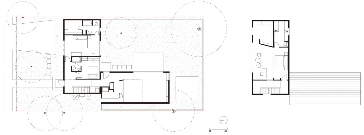 Los poco más de 200 metros cuadrados de superficie de esta casa constituyen la transformación más reciente de un proyecto que comenzó en 1993. Esta última fase ha consistido en integrar una pieza de una planta de altura en la casa original, dando pie a una organización en L dispuesta en torno a un frondoso patio ajardinado que dota de sombra y privacidad al conjunto.