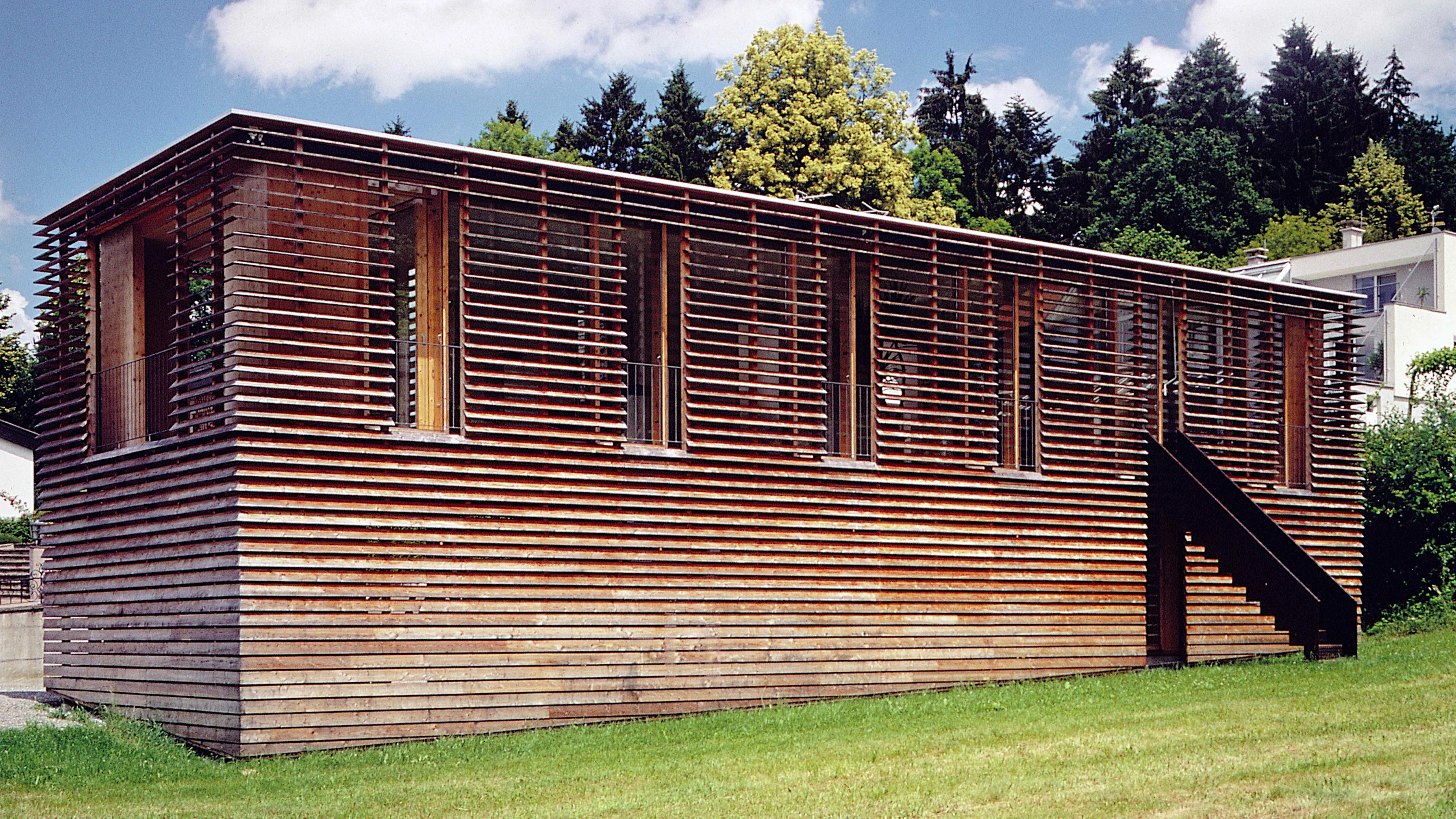Un verde y paradisiaco prado situado en los alrededores de la localidad austriaca de Lochau constituye el privilegiado lugar donde los arquitectos debían construir una casa para una madre soltera. El proyecto sólo tenía que satisfacer un requisito: su implantación en los mismos terrenos que la otra vivienda de la familia no debía entorpecer las vistas que ésta tenía de un lago situado al sur.