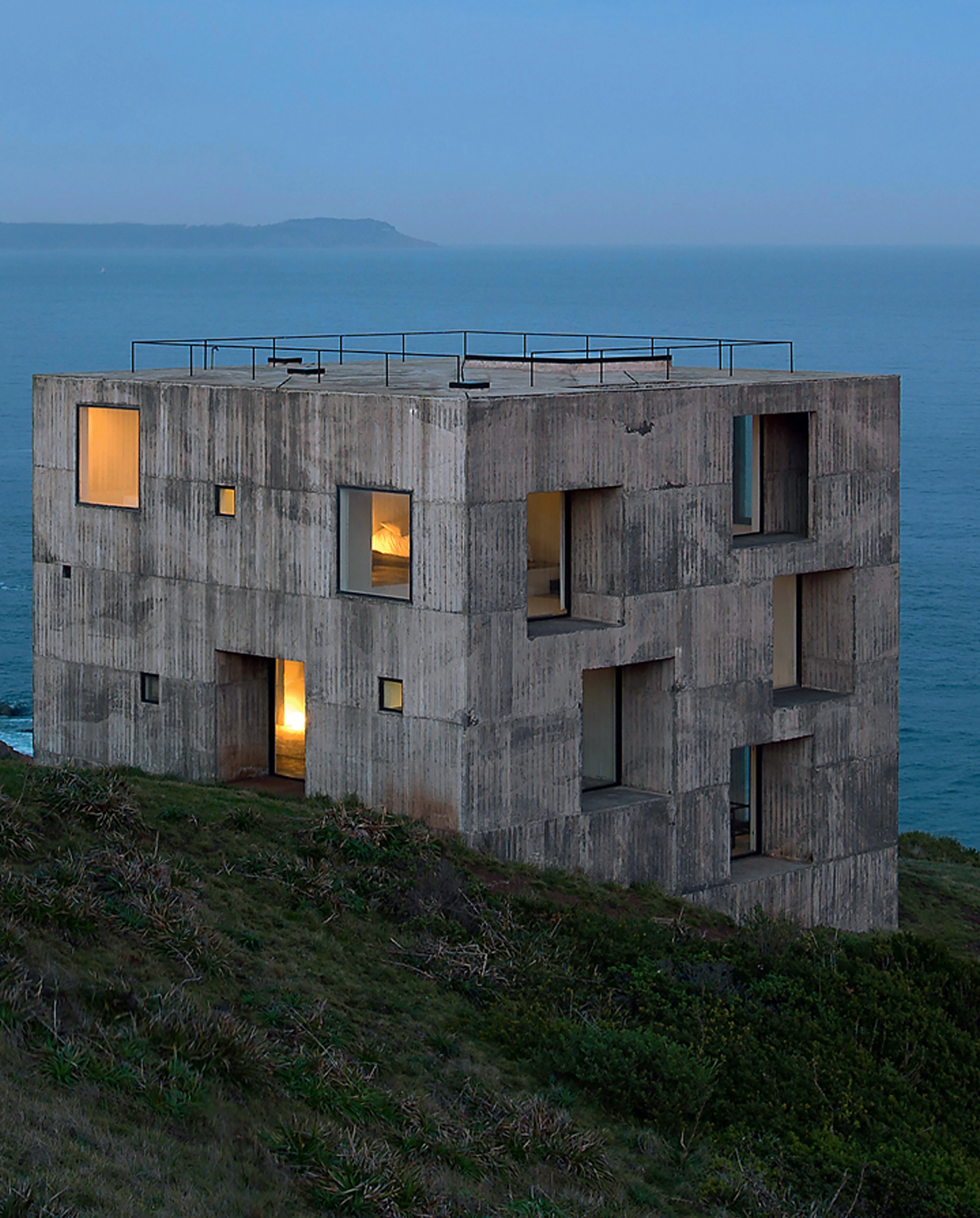 Establecer una pieza compacta y autónoma serviría para recuperar al menos dos cosas: por un lado, la sensación de un podio natural rodeado de nada y, por el otro, el vértigo y la caída; esa lectura morbosa del pie del acantilado, donde revienta el mar contra las rocas. El programa oscila entre casa de vacaciones y centro cultural, lo que establecía una vocación contradictoria: el interior debía mediar entre una dimensión pública y otra más íntima e informal; debía ser medio monumental y medio doméstico.