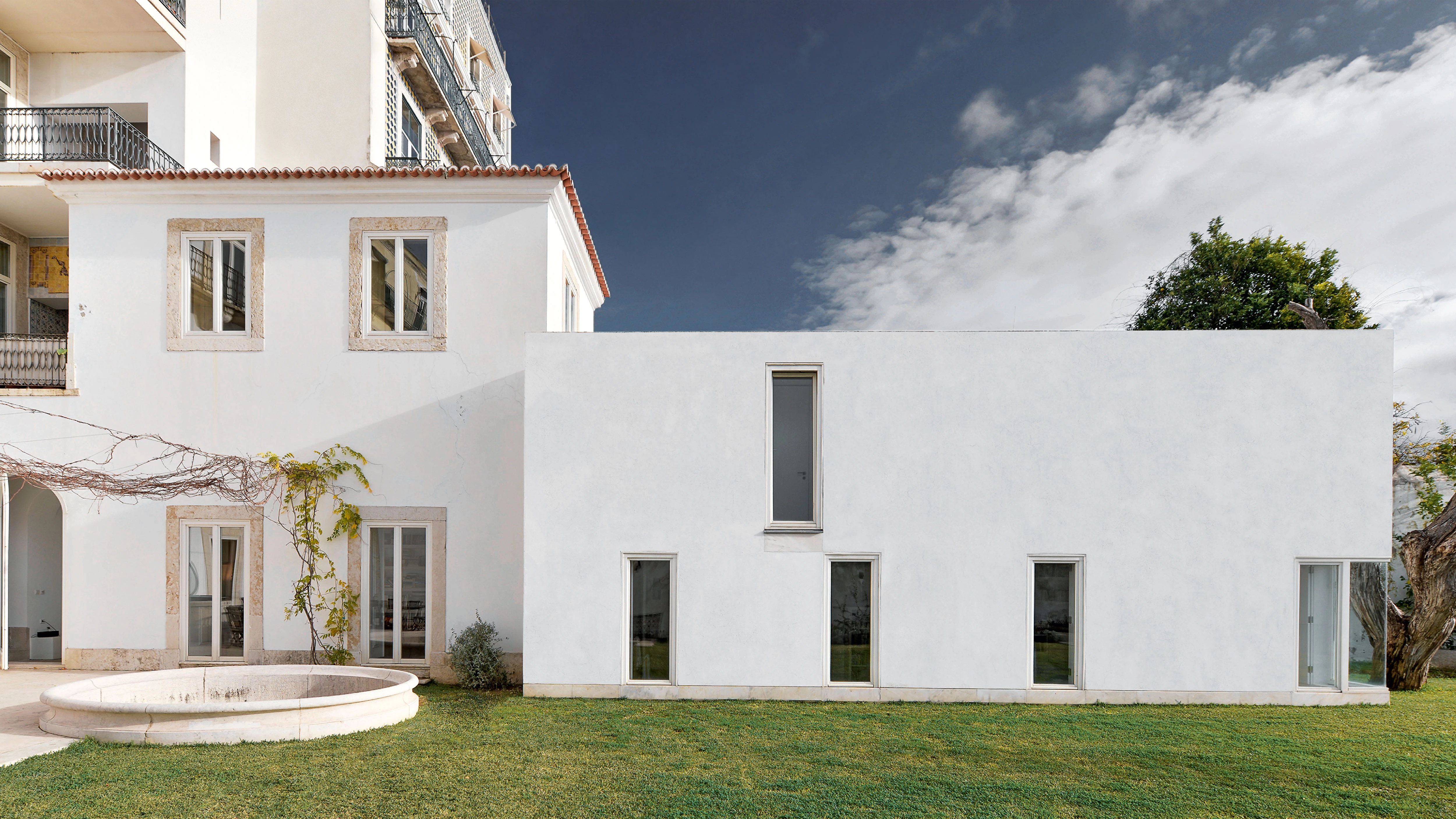La lisboeta rua de São Mamede ao Caldas es una de esas típicas calles con adoquines blancos y negros esculpidas, con la determinación de una curva de nivel, en la colina sobre la que se erige el imponente Castelo de São Jorge. Disimulado entre los destellos multicolores de las fachadas de azulejos, el número quince esconde en su interior cinco viviendas del siglo XVIII que se vuelcan sobre un jardín con vistas al Tajo, y de las cuales se ha rehabilitado la ubicada en la planta baja. Se trataba de una casa cuyas estancias, amplias, delimitadas por gruesos muros de carga y cubiertas por unos magníficos techos abovedados, se sucedían en un laberinto de concatenaciones a lo largo de varios niveles. El proyecto ha adoptado la estrategia de poner en valor el carácter abierto de estas estancias y sus cualidades arquitectónicas, así como las de una cantina abovedada subterránea, de manera que los espacios comunes y más representativos (salón, comedor, cocina, sala de juegos) se han ubicado en el edificio preexistente, en el que sólo se ha intervenido para recuperar los suelos originales de piedra y repintar las paredes de blanco. Los dormitorios, por el contrario, se han distribuido en un nuevo volumen que adopta la forma de una caja blanca, adosada a uno de los muros del generoso jardín y que se abre a las vistas panorámicas sobre el estuario del Tajo.