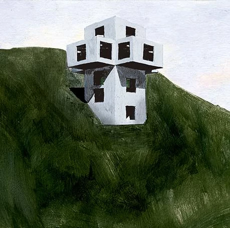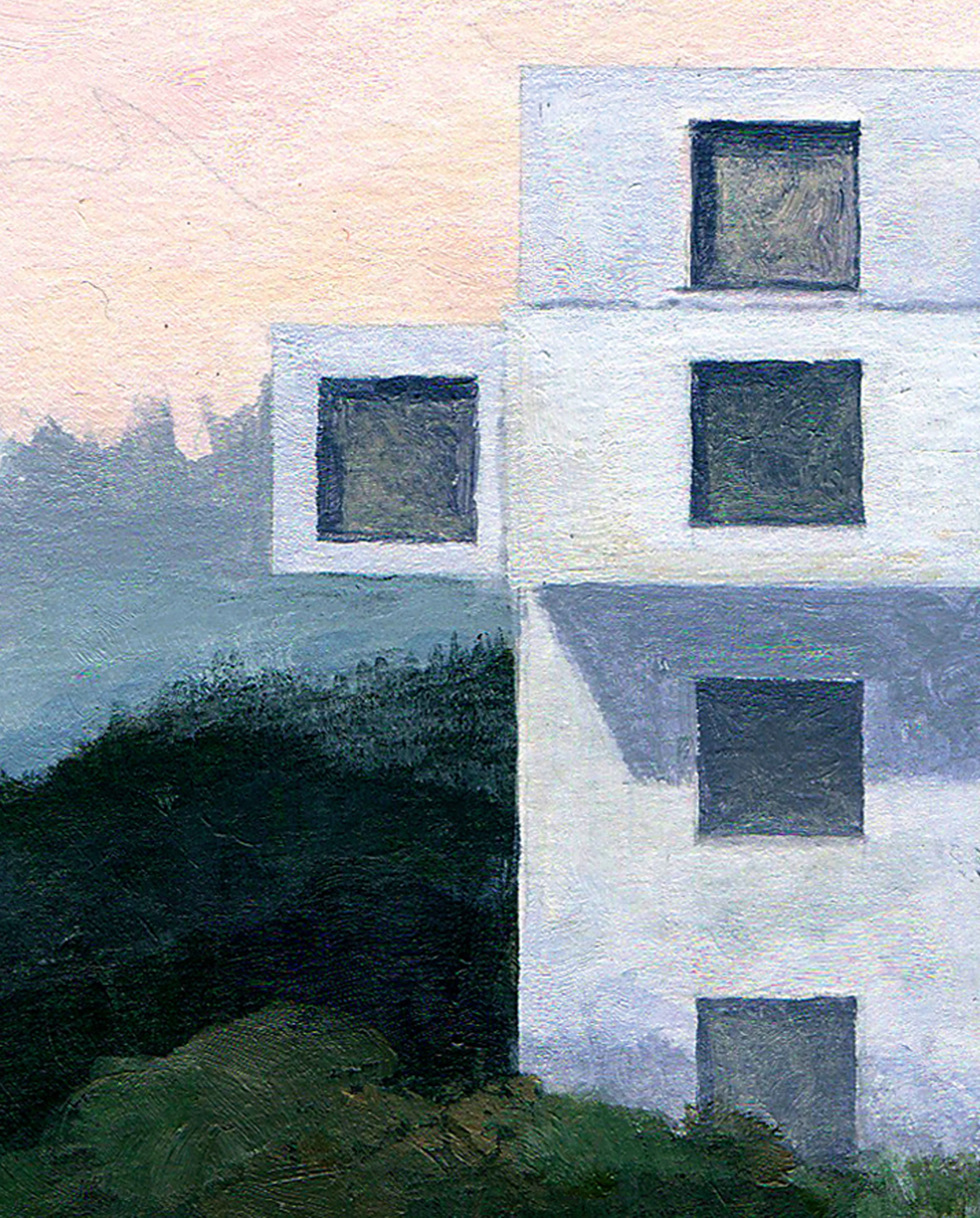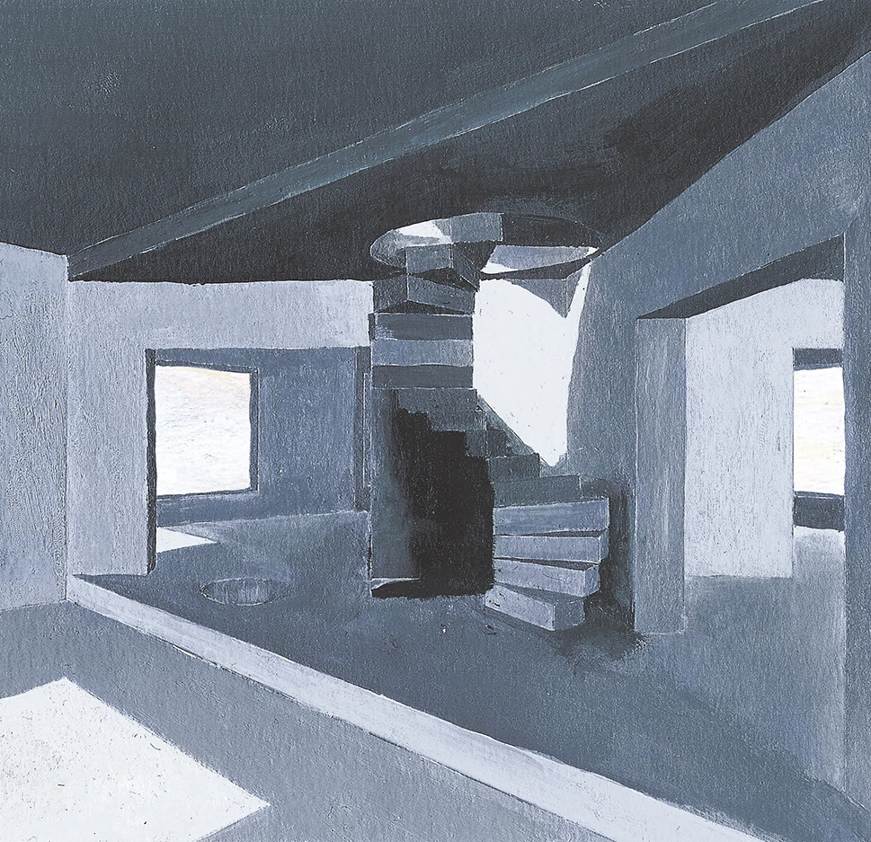 Las vueltas que da la vida. Cómo saber que en la pequeña casa de madera que hubo que demoler para construir otra de hormigón junto a la laguna, vivió el abuelo de quien más tarde, precisamente por esa casa y justo al otro lado de esa laguna, decidiera construir su nueva casa. Tal como en aquella, aquí también la planta se concentra para liberar un suelo accidentado. Pero ya no habría esquinas ni patio. El riesgo se compensa con su altura: el formato es ahora una torre engastada en el cerro que se ensancha en el fuste, con una planta abierta, una rotonda dividida por muros diagonales que amarran sus esquinas interiores. Rotada como está, la cruz central traslada al suelo natural los esfuerzos de la cruz en voladizo. A cada lado de esos muros hay una escalera en espiral; una sube a una habitación con cuatro terrazas, la otra, siempre a la sombra, lleva a directamente a la laguna.
