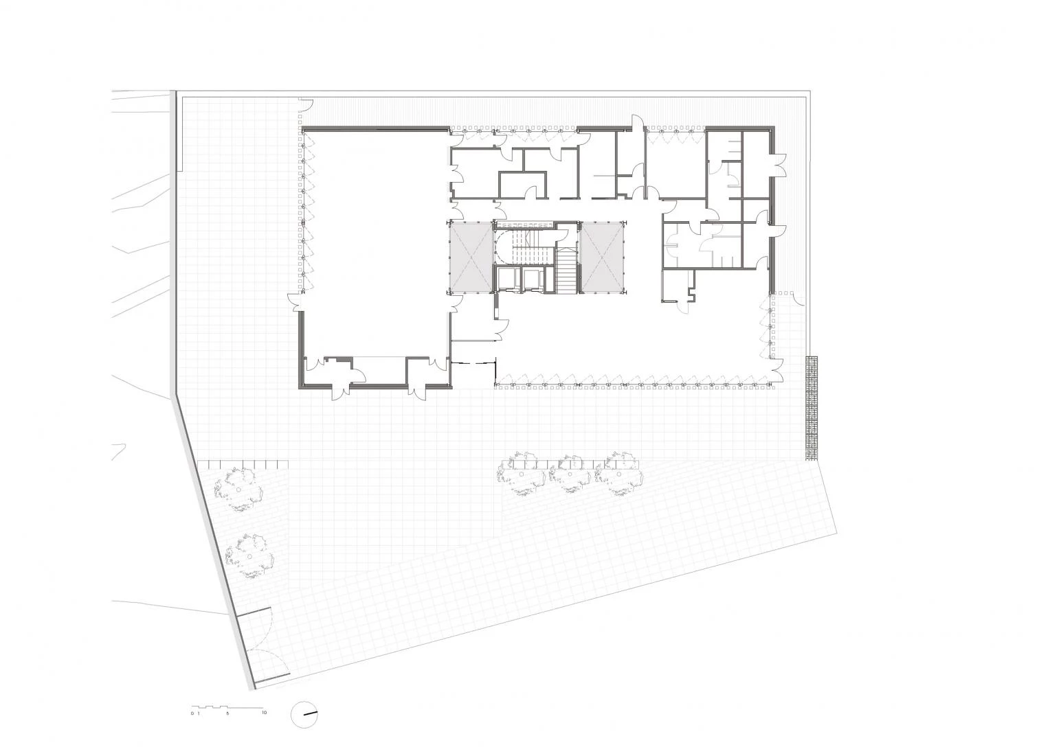 El aire que circula por los tubos enterrados, una vez templado por el subsuelo, se lanza dentro de los dos patios cubiertos, que funcionan como grandes conductos de aire. El proyecto recoge así una antigua tradición mediterránea. Dado que es un aire suficientemente confortable tanto en invierno como en verano —ronda los 17 o 18ºC todo el año—, el gasto energético para climatizar el edificio es muy bajo. Sólo en los días más duros —del invierno o del verano— habrá que tratarlo ligeramente para conseguir la temperatura de confort. Además, la cubierta genera 60.000W de potencia eléctrica al año a través de placas fotovoltaicas, situando el consumo del edificio muy cercano a cero.