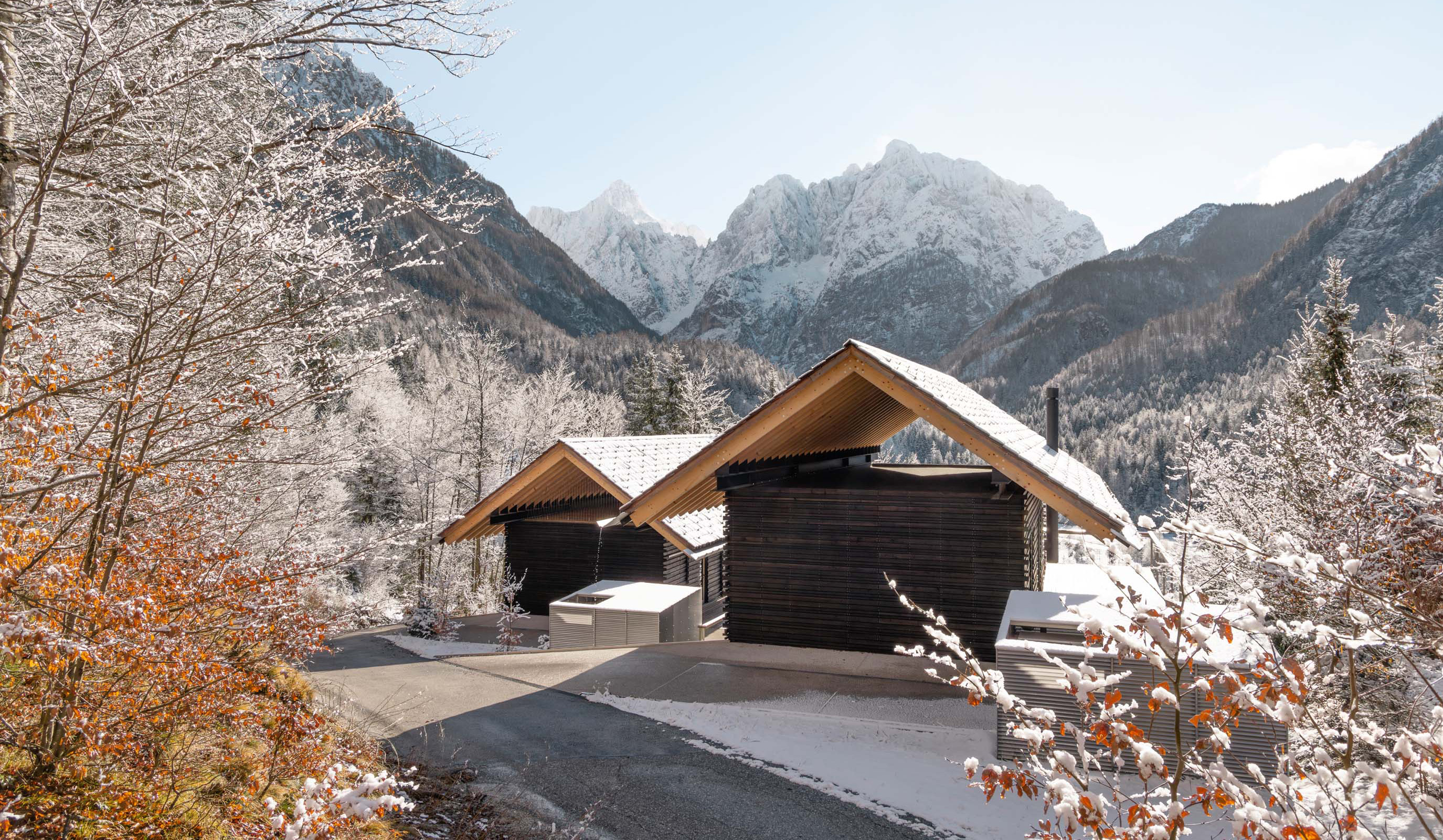 La firma de Aljoša Dekleva y Tina Gregorič ha proyectado estas casas de vacaciones junto al lago Jasna y el Parque Nacional de Triglav, ubicado en Eslovenia, cerca de la frontera con Italia y Austria. Estos alojamientos combinan tradición, innovación, naturaleza y arquitectura, redefiniendo el modelo de vida en terrenos escarpados mediante una interpretación contemporánea de las construcciones alpinas en madera. Su diseño destaca la necesidad de una arquitectura reflexiva y respetuosa con el paisaje montañoso donde se inserta.