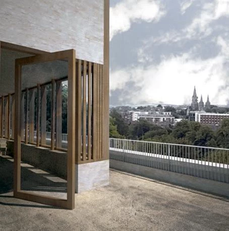 John Tuomey Sheila O’Donnell O’Donnell + Tuomey ArchitectsCalificada como área de alto valor paisajístico, la ladera que desciende desde la calle Sundays Well hasta el río Lee disfruta de una vista panorámica hacia el parque Fitzgerald y el sur de Cork. La parcela, hoy en día desocupada, está rodeada en el lado este por un conjunto de casas aisladas y en el oeste por una hilera de viviendas adosadas. El proyecto llena el vacío mediante dos volúmenes autónomos que articulan la transición entre estas dos situaciones urbanas y completan el frente visible desde el paseo junto al río.