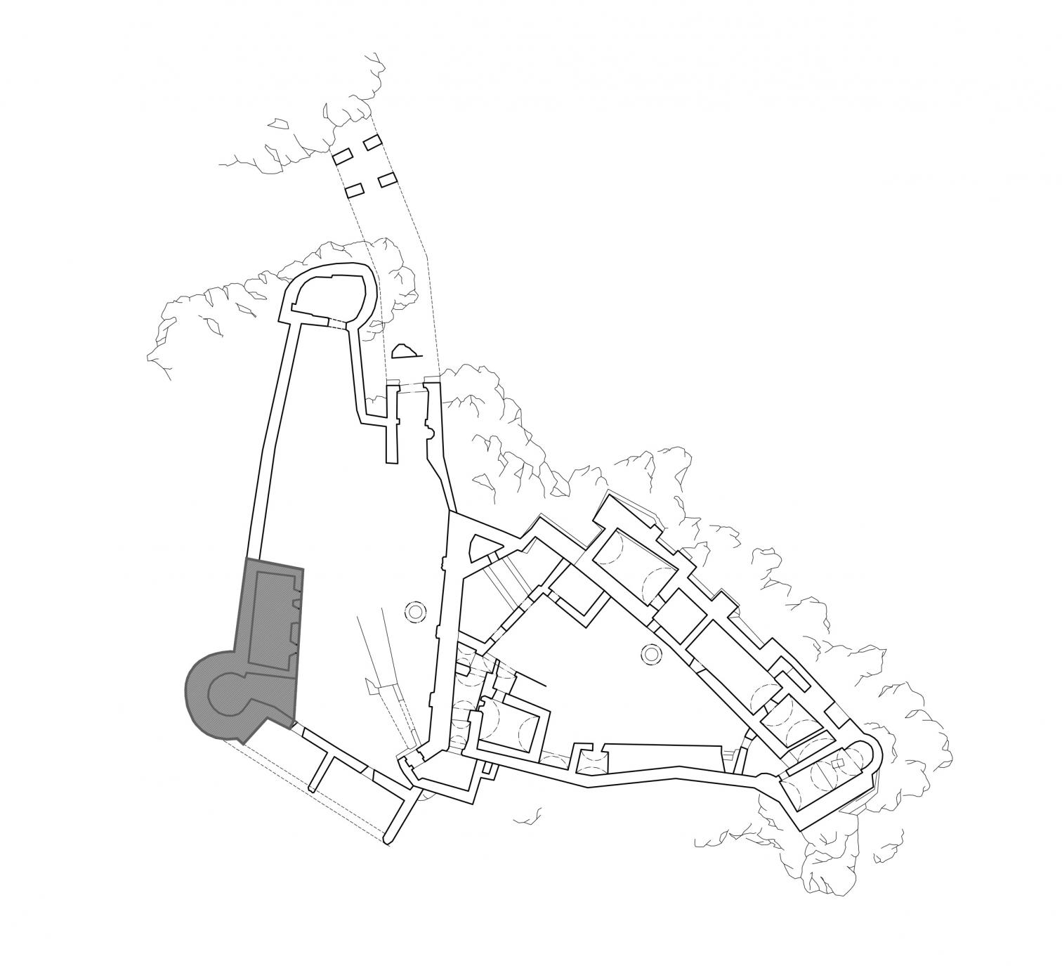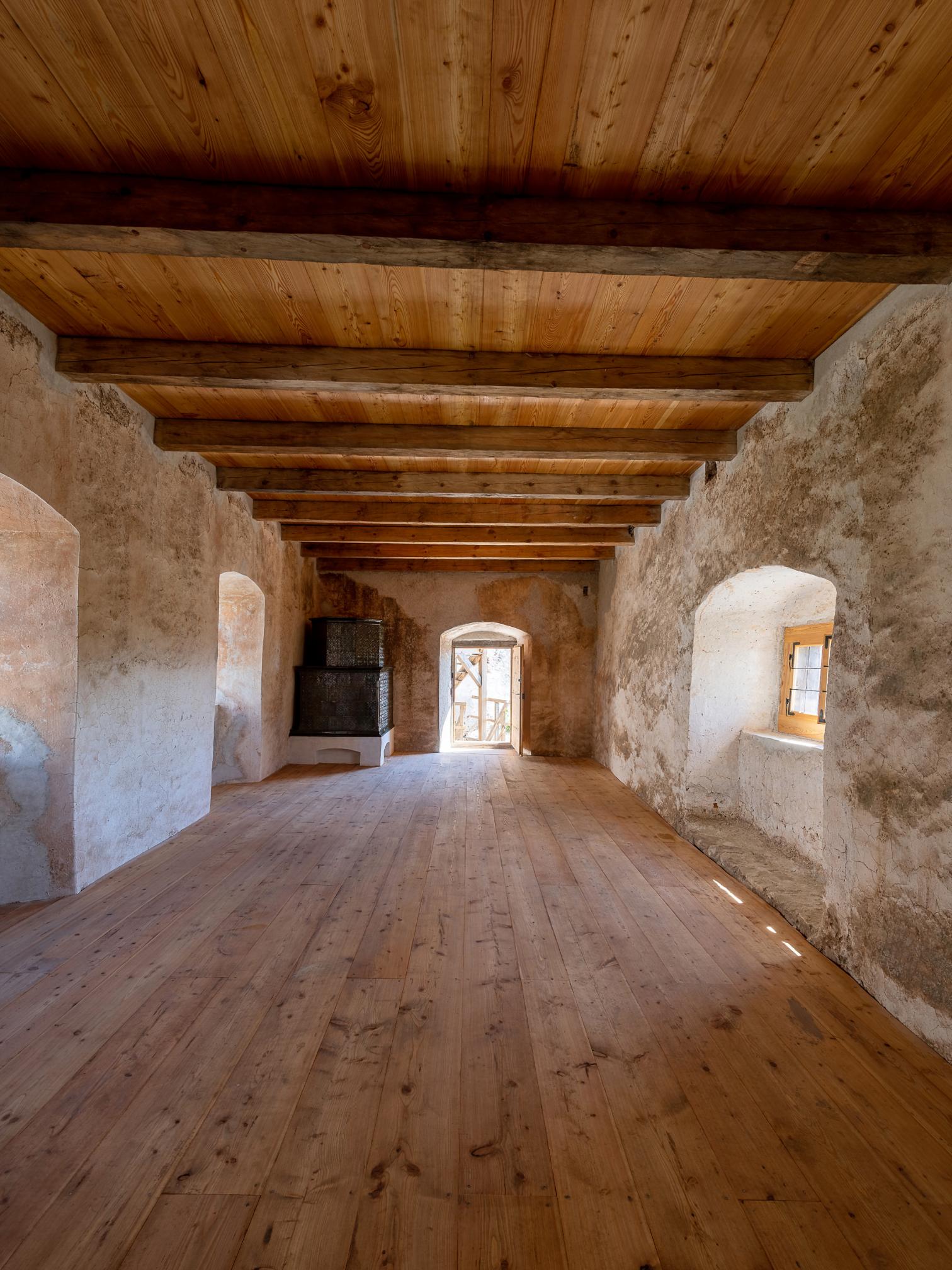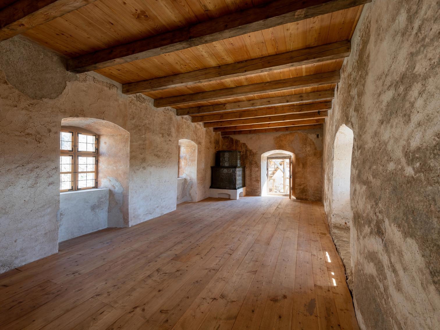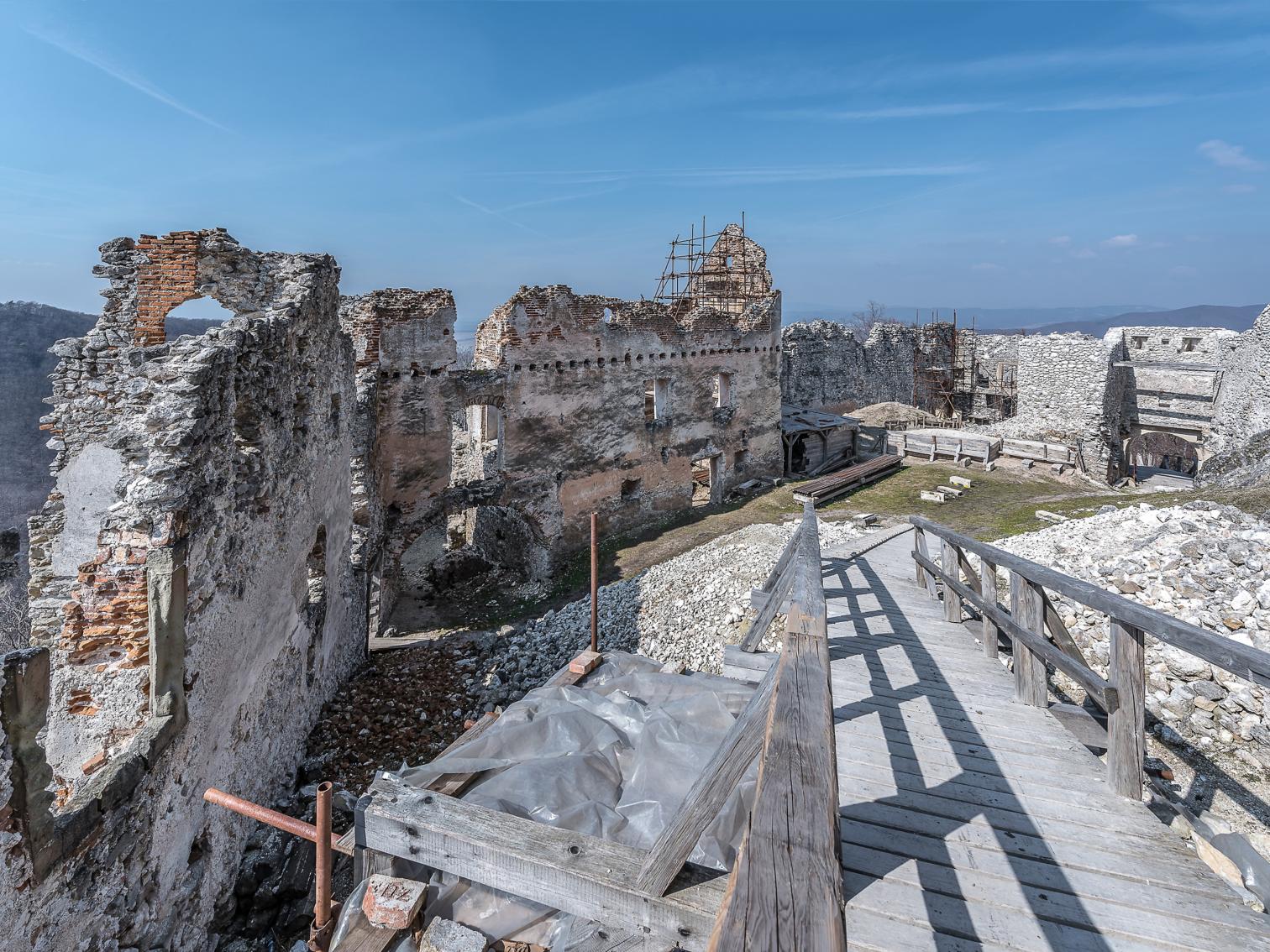 El hito más reciente en este ambicioso proyecto de rehabilitación del castillo, construido hacia 1241 y destruido por un incendio en 1848, es la actuación en el edificio de operaciones con tres plantas, situado en el patio inferior de la fortaleza. Construido en la etapa final del Renacimiento, este espacio multifuncional servirá como sala de exposiciones, área común, alojamiento para visitantes, voluntarios y especialistas implicados en la restauración del complejo.