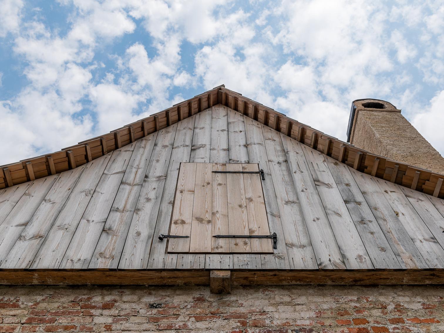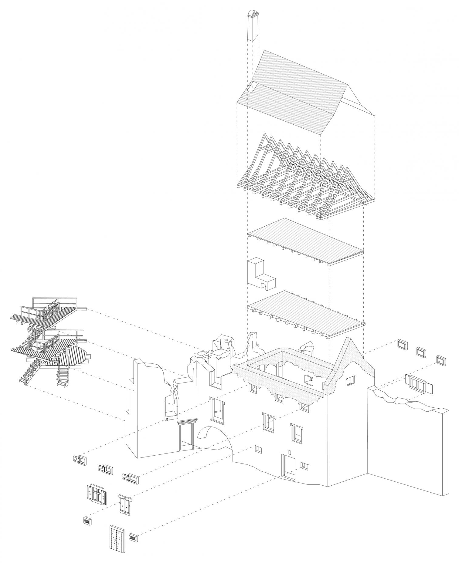 En la intervención se emplearon materiales tradicionales y técnicas artesanales, como vigas de madera recortadas a mano, muros de mampostería rehabilitados y una cubierta con piezas de madera inspirada en las huellas originales del hastial norte. Entre los detalles más llamativos del edificio restaurado se encuentran las ventanas de vidrio fundido a mano, una estufa de azulejos reconstruida a partir de fragmentos originales, y el uso de revoques de cal para respetar la estética histórica.