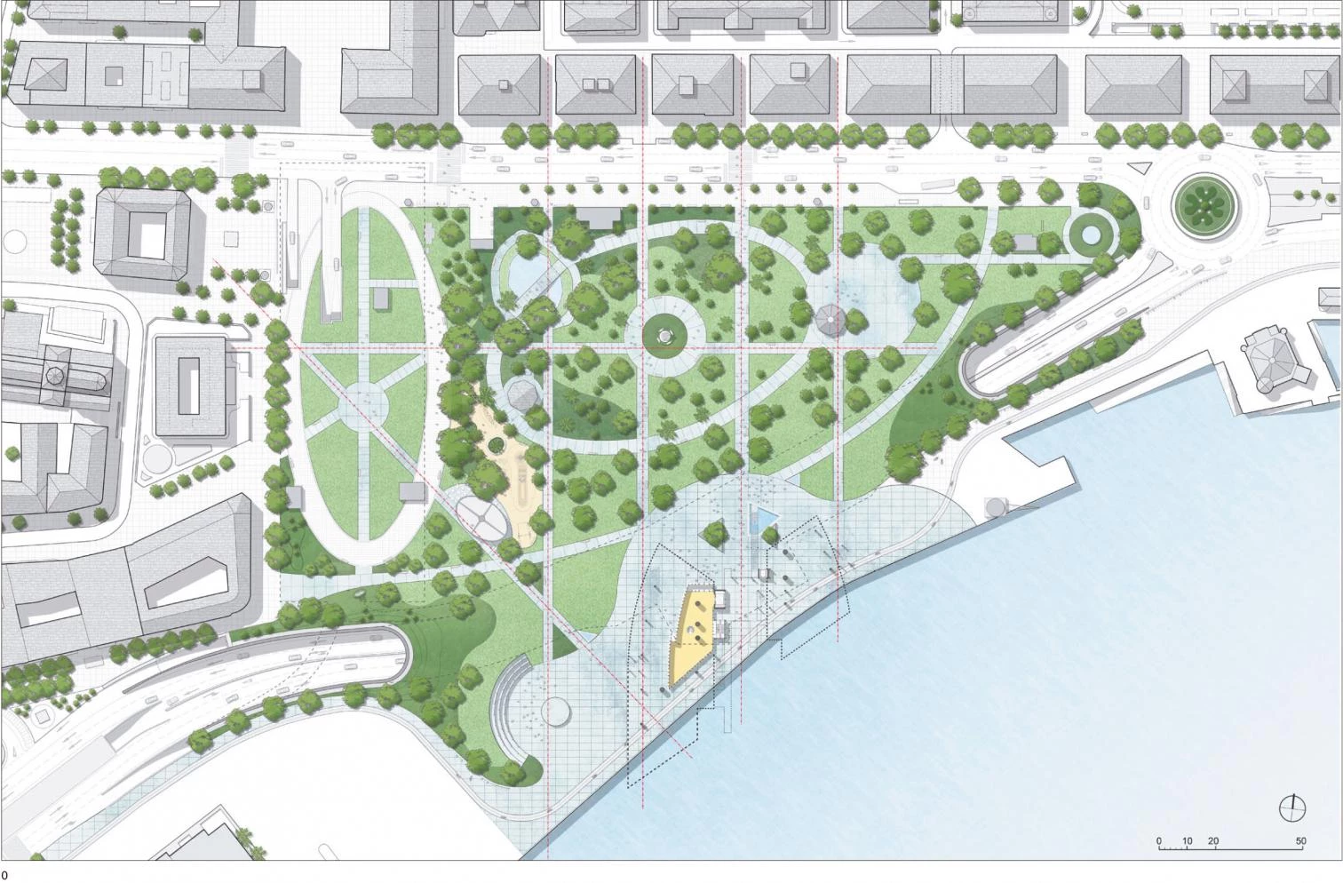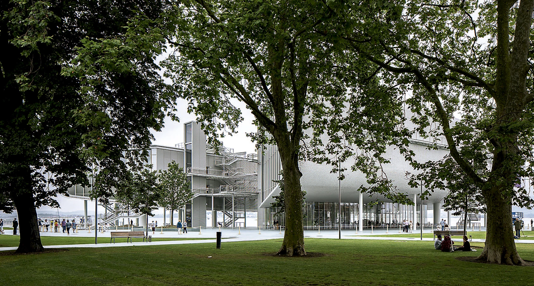 A los anteriores volúmenes se añade un anfiteatro excavado en el entorno del edificio, cuya fachada oeste se ha dotado de una pantalla de LED para cine al aire libre. El programa se completa con un espacio acristalado que se sitúa en la planta baja, y que acoge un café, un restaurante, una zona comercial y un punto de información. El conjunto así formado crea la sensación de que el espacio interior y el exterior son casi indistinguibles, y hace posible que los visitantes y ciudadanos pueden disfrutar de un nuevo panorama del paisaje marítimo de la ciudad.