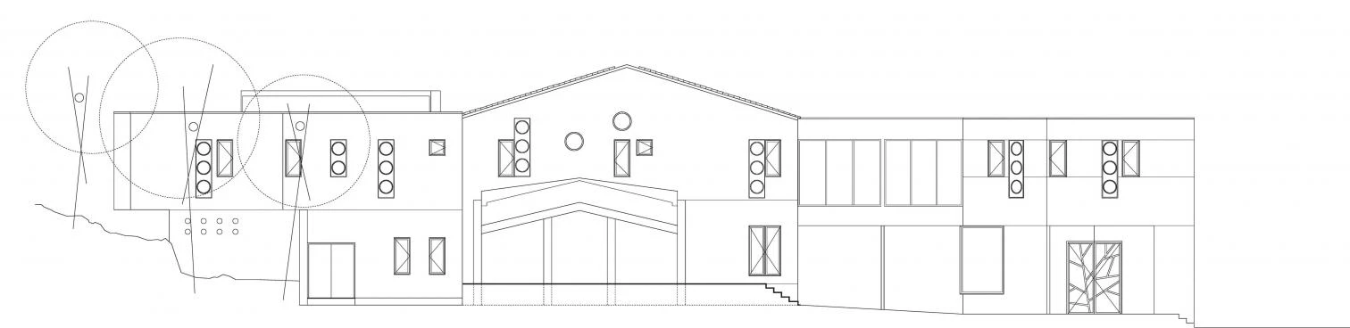 El proyecto establece una diferenciación clara entre lo que se mantiene y lo que se construye nuevo. De este modo, las fachadas y las cubiertas inclinadas a dos aguas de los edificios a mantener se rehabilitan, limitándose la actuación únicamente a intervenciones mínimas.