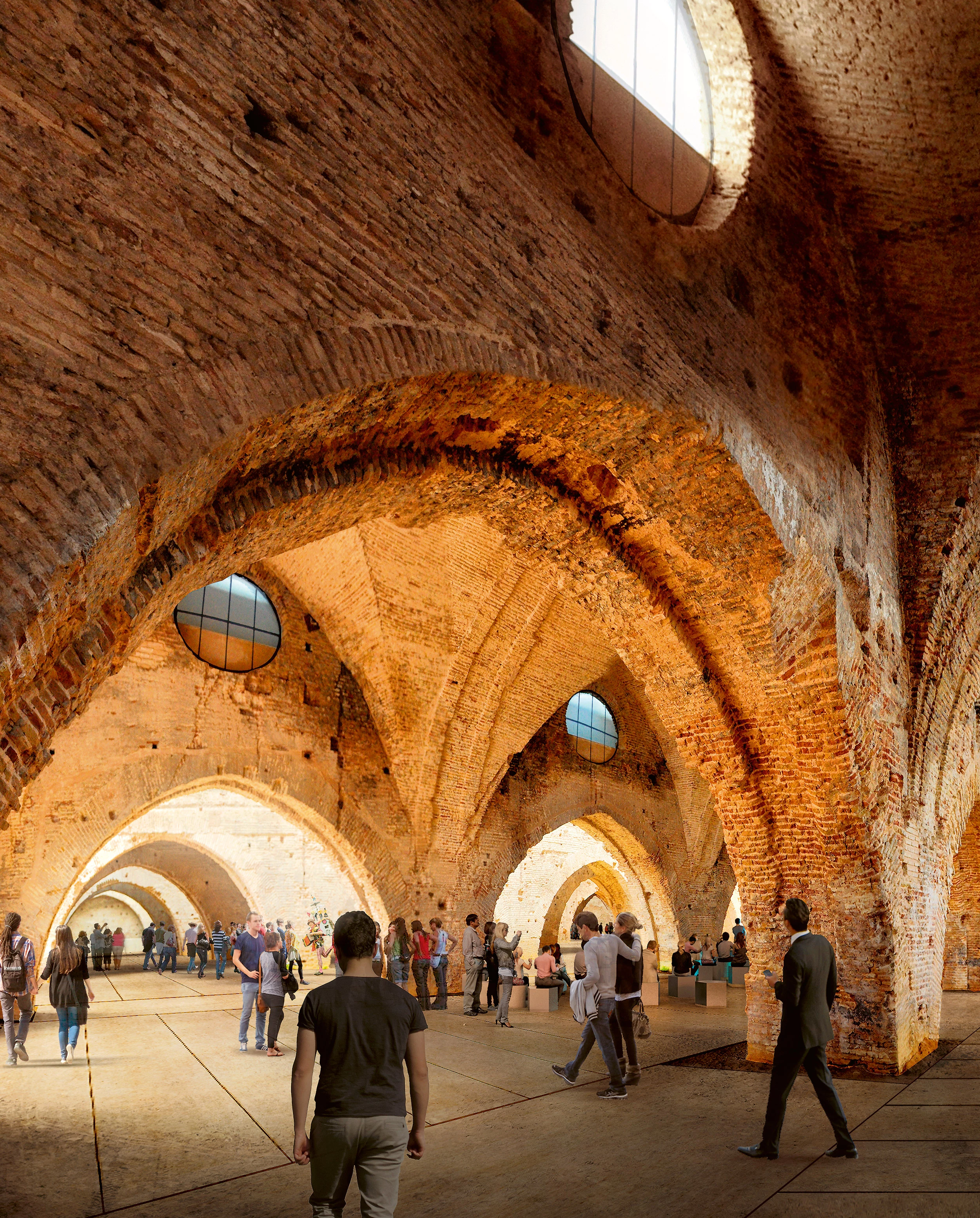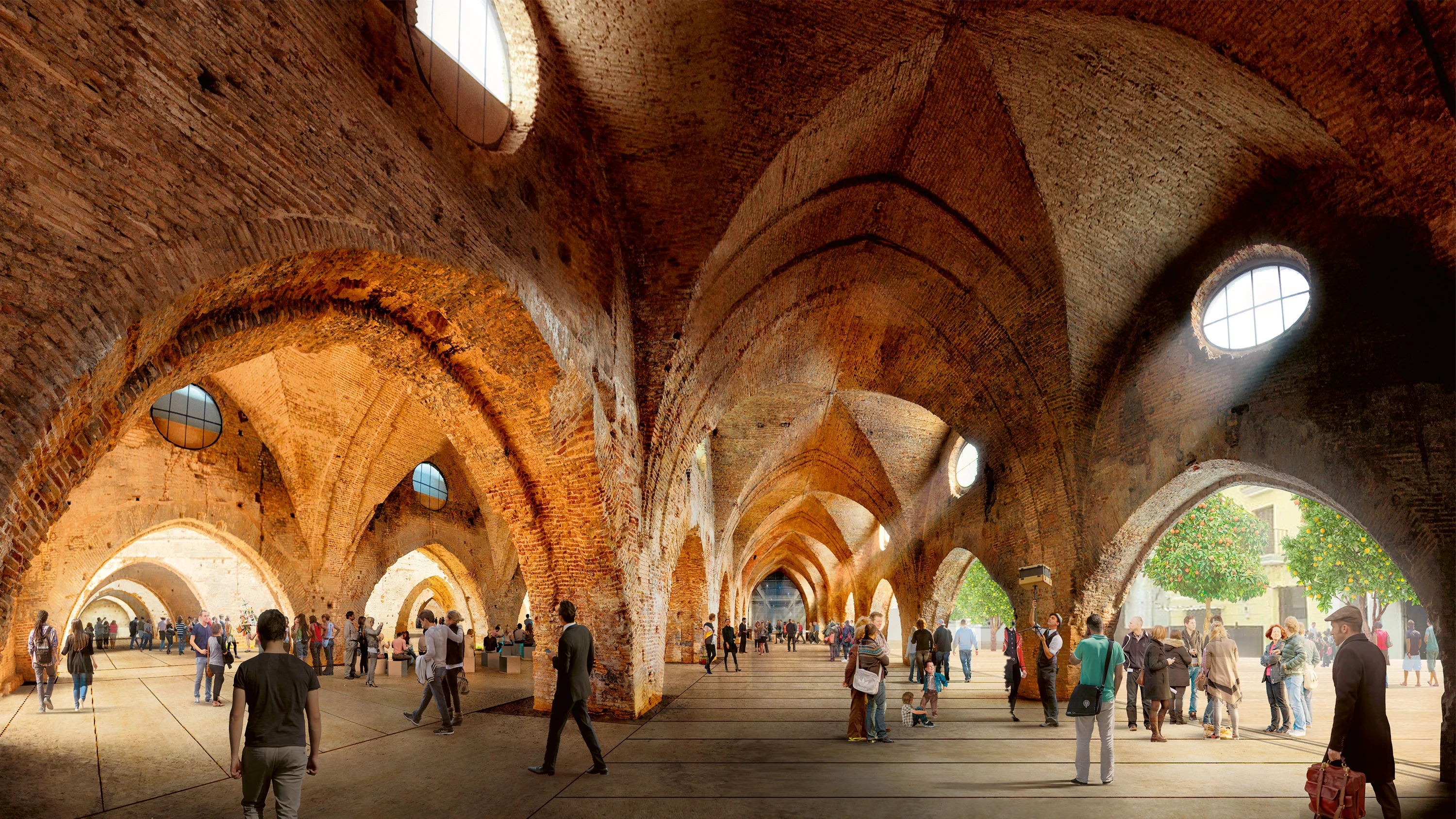 La propuesta transforma las Reales Atarazanas de Sevilla, un conjunto del siglo XIII de 7.200 m² y formado por 17 naves, en un espacio público de interacción social y cultural en el corazón de la ciudad, abierto a través del acceso por la calle Dos de Mayo...[+]
