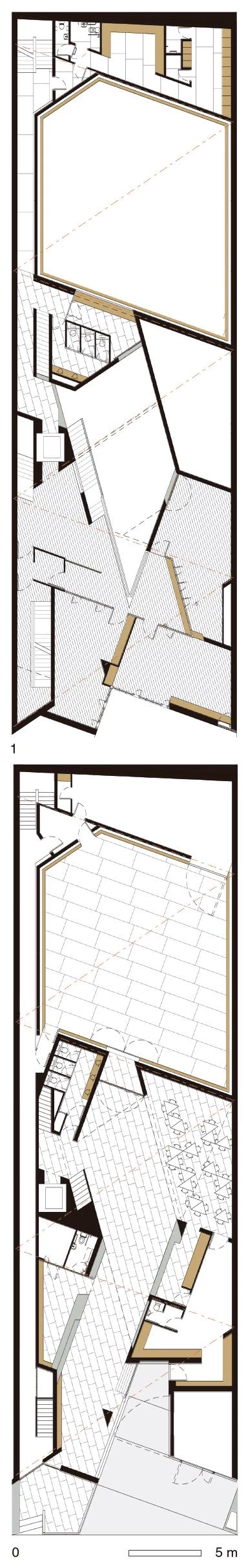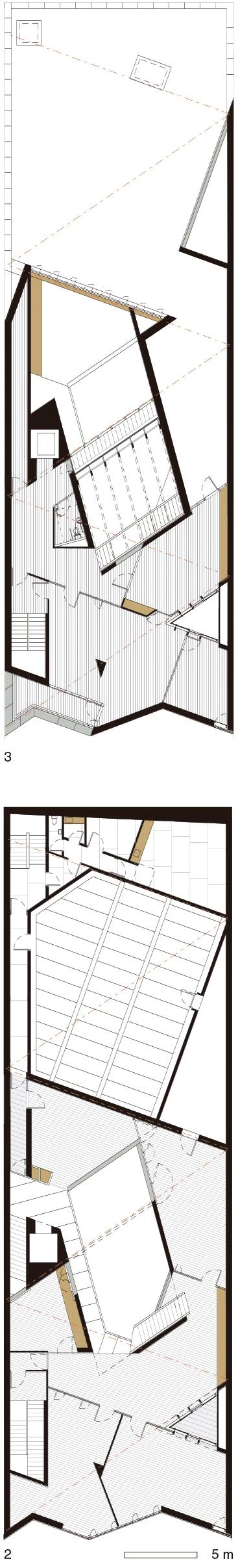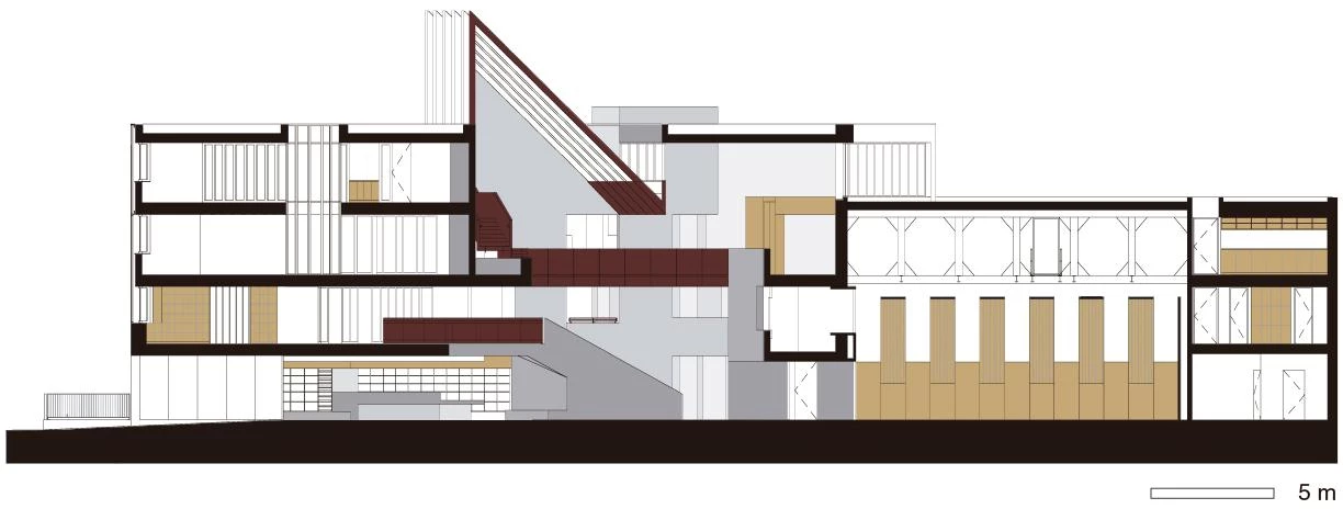 Con el objetivo de preservar y fomentar la lengua irlandesa, el edificio promovido por la organización An Gaeláras invita a los ciudadanos a formar parte del centro cultural canalizando el flujo peatonal desde el frente urbano hasta un gran atrio interior. La parcela, situada en el centro histórico de Derry, se inscribe en un perímetro rectangular con tres de sus lados opacos, por lo que la luz llega al espacio central a través de un gran lucernario de perfil triangular. Un pavimento continuo de terrazo conecta el espacio público con el edificio. En contraste con la geometría exterior, perfectamente ortogonal, el interior se distribuye siguiendo líneas oblicuas que dirigen el movimiento de los usuarios como si fueran bolas en un ‘pinball’. Una serie de pasarelas, plataformas y escaleras rodean el vacío de cuatro alturas en torno al cual se distribuye el programa, que incluye aulas, oficinas, despachos, una tienda, una cafetería y un salón de actos.