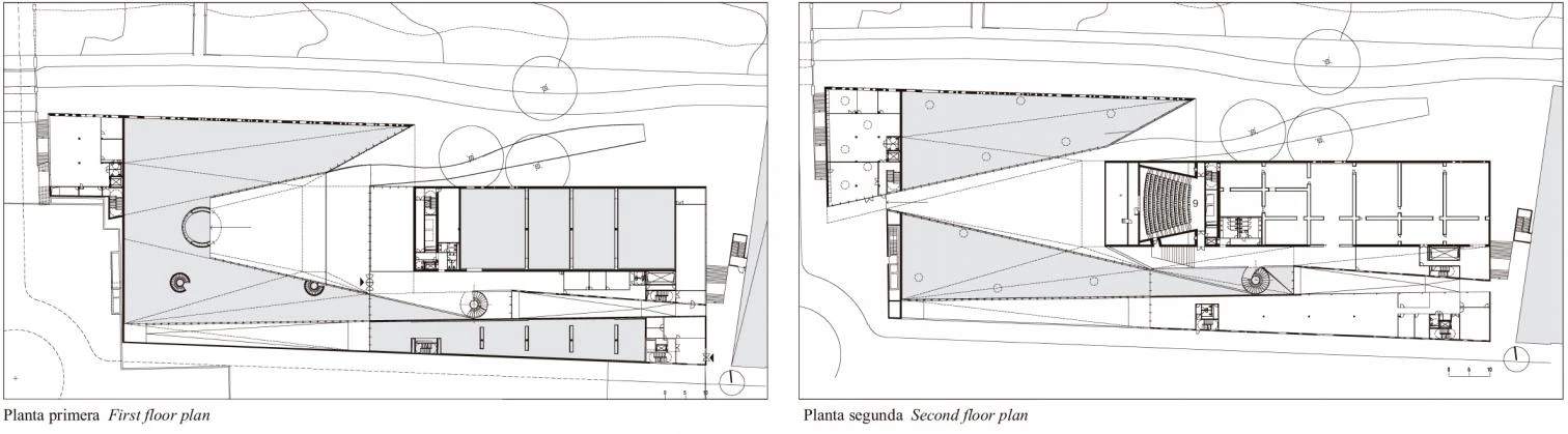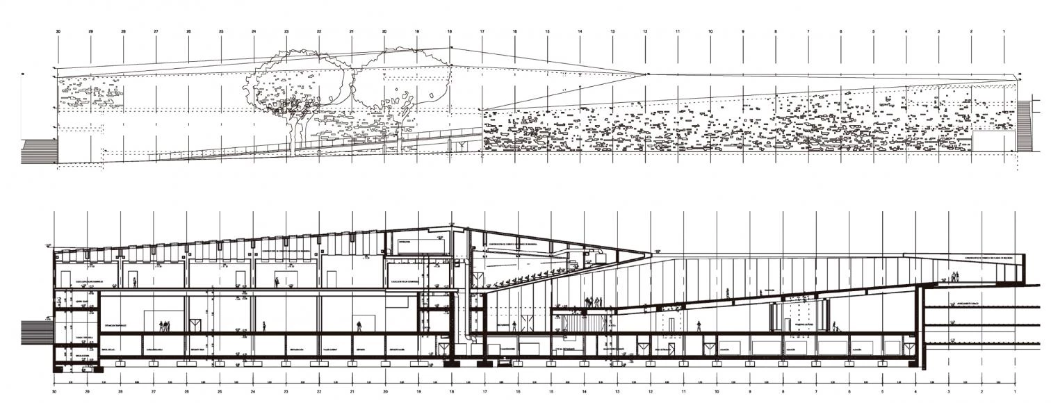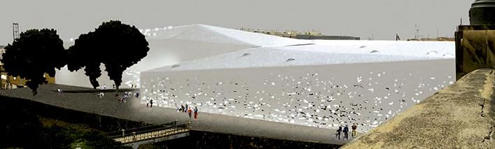 Todas las actividades del centro se distribuirán bajo una misma cubierta continua. Es por ello que los patios no parecerán espacios exteriores incorporados, sino que se percibirán más bien como espacios interiores al aire libre. El nuevo Centro Cultural constituirá un espacio de encuentro para la gente, y también un lugar de confluencia del paisaje de la ciudad contemporánea, de la ciudad vieja, cuyo perfil se recorta sobre el barranco, y de la arcaica topografía del propio barranco.[+][+][+]