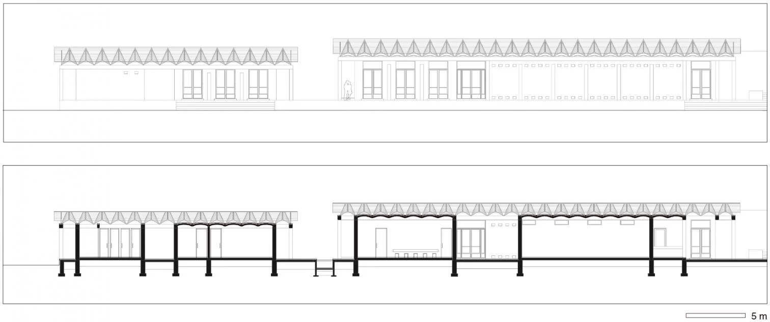 El edificio se ubica próximo a un lago interior en un terreno ganado al agua y crea un nuevo acceso público a la orilla. Atendiendo a las necesidades programáticas, el edificio se divide en tres volúmenes independientes, dos de ellos unidos por una cubierta común. La construcción se lleva a cabo con bloques de tierra compactada, con los que se levantan la totalidad de paredes y bóvedas de cañón, conformando un sistema constructivo muy adecuado para las condiciones climáticas locales. Las aberturas situadas en paredes y bóvedas permiten la ventilación natural del edificio, garantizando temperaturas confortables en el interior sin necesidad de sistemas mecánicos de climatización. El proyecto paisajístico integra espacios públicos a lo largo de la orilla y un paseo que recorre la parte superior del dique.