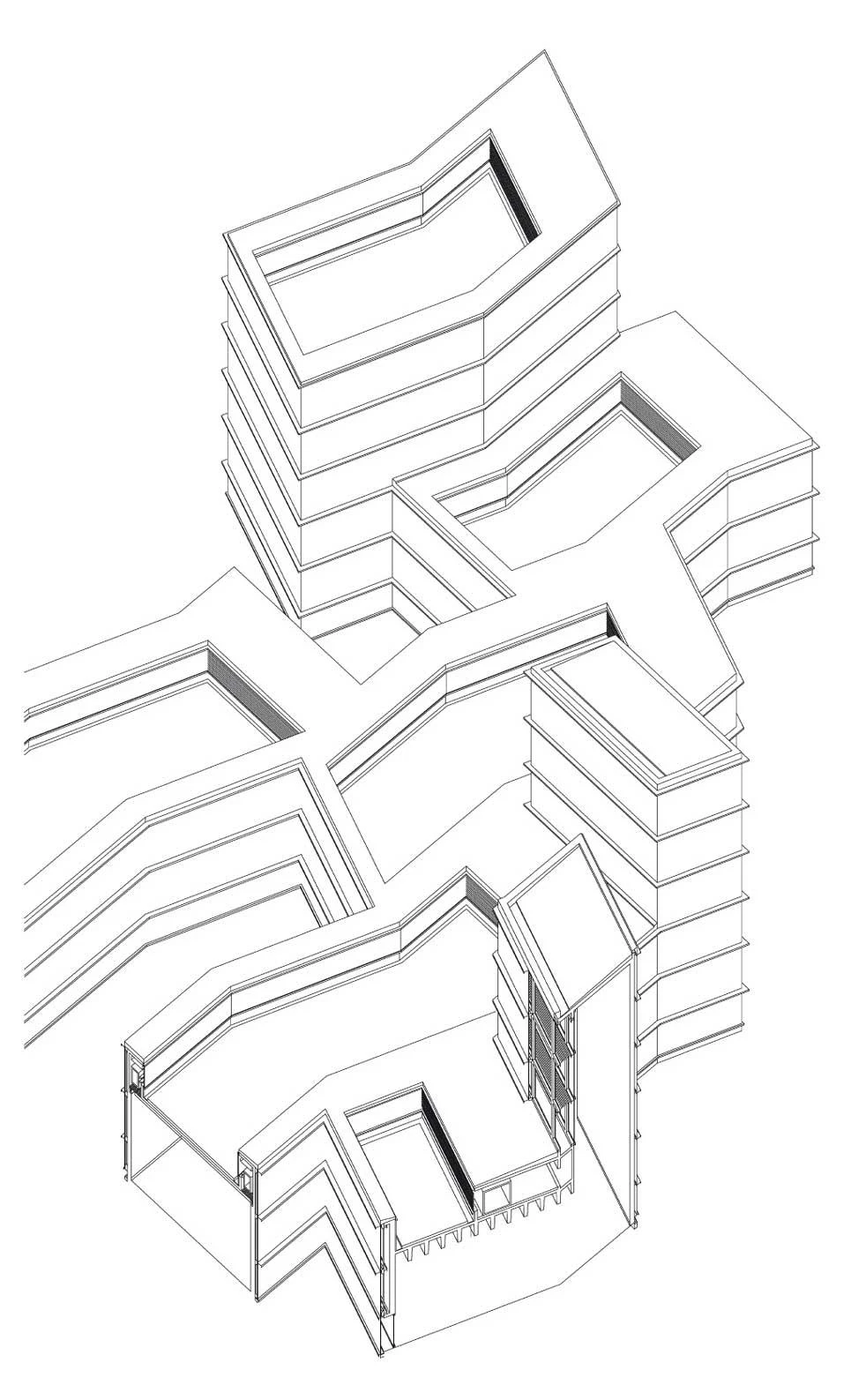 Cada sala de forma quebrada construye un ambiente continuo pero diferenciado espacialmente, que se abre a las otras salas y patios propiciando visiones longitudinales, transversales y diagonales.