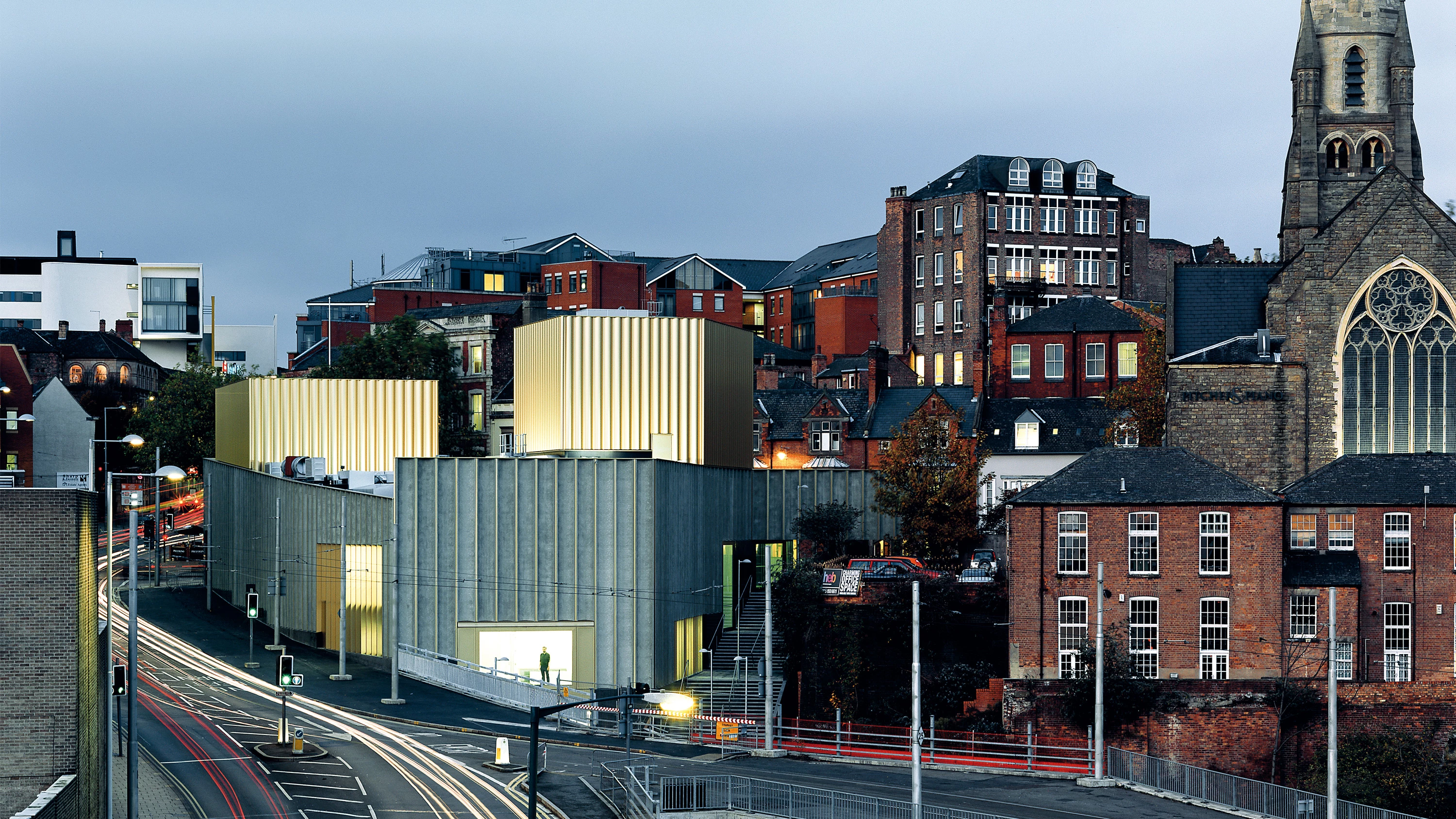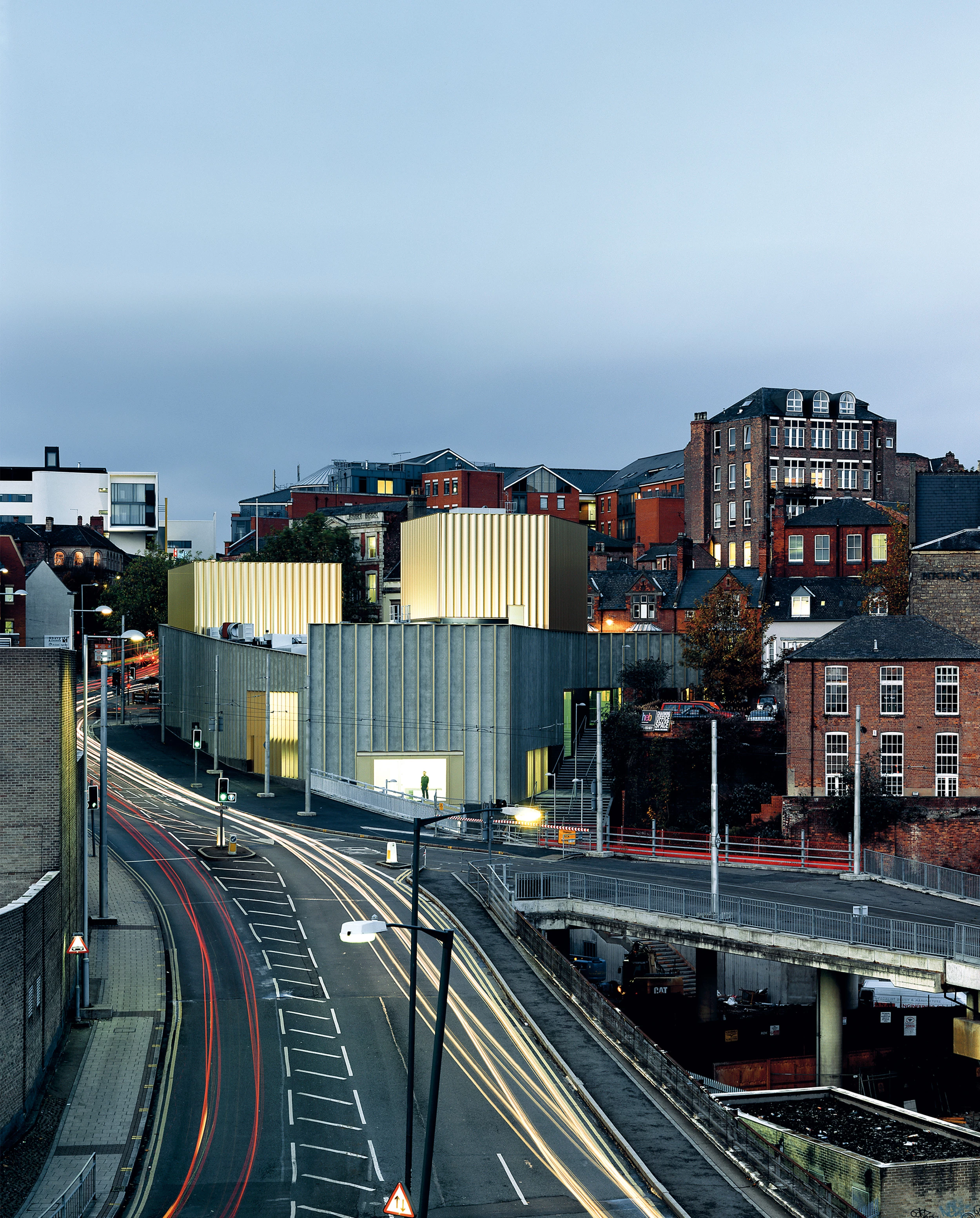 El Nottingham Contemporary, localizado cerca del castillo de la ciudad y del Museo del Encaje —tejido cuya producción hizo de Nottingham un importante centro industrial en el XIX— ofrece un variado repertorio de espacios expositivos con aspecto de loft en un edificio de nueva planta. El solar donde se alza salva un desnivel de trece metros entre la cota superior, Weekday Cross High Pavement, y la inferior, Cliff Road. Entre ambas, la escalinata de Garners Hill, cuyo trazado se ha ensanchado hasta los cinco metros, se dignifica como ruta norte-sur en el corazón de Nottingham.