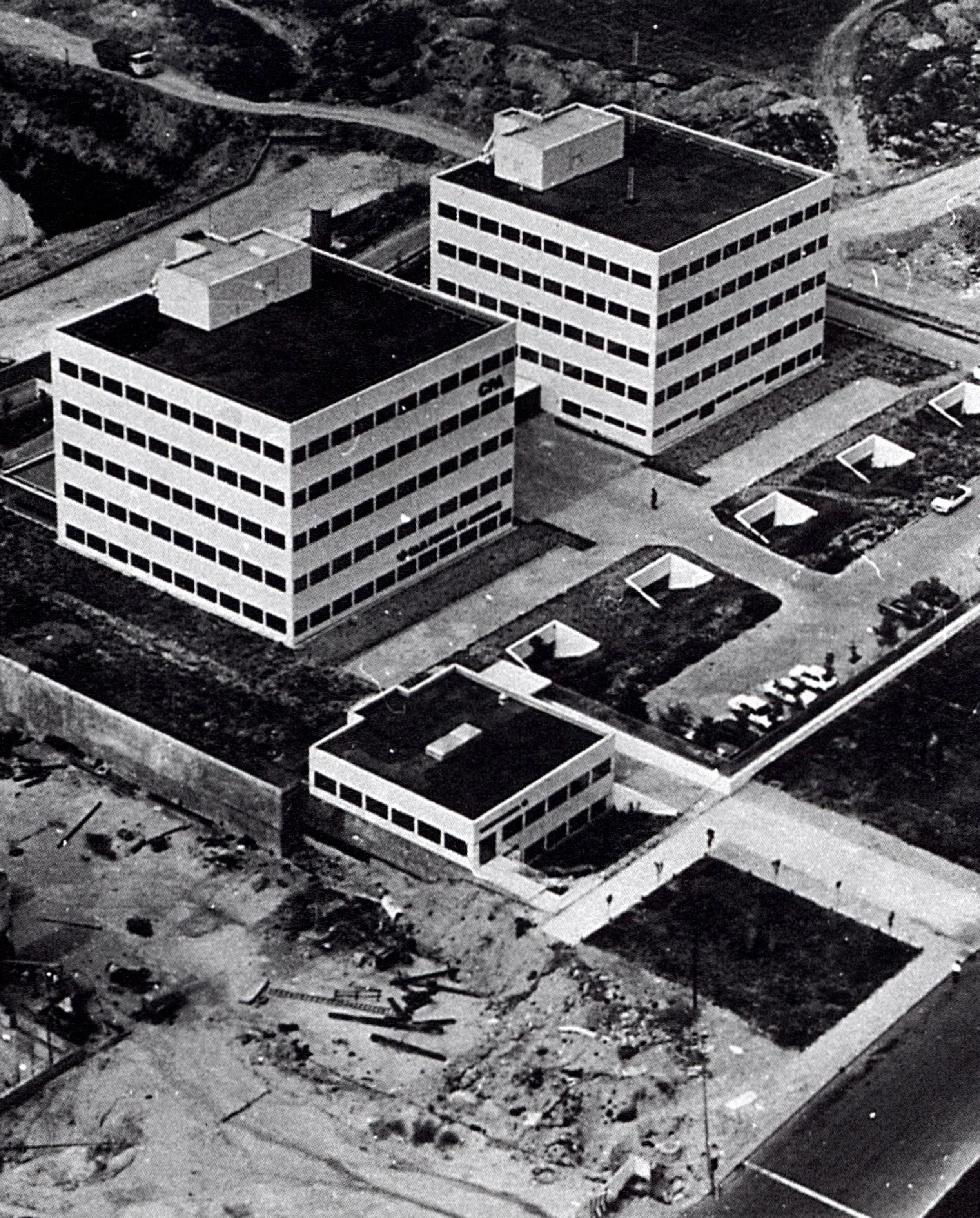Por primera vez, Sota puede disponer del cerramiento ligero industrial ensamblado en seco que tanto ha buscado y que. a partir de ahora, usará siempre. Emplea dos tipos de chapa, una galvanizada en el semisótano y otra lacada en blanco en los volúmenes emergentes. En el interior, un falso techo de rejilla de acero galvanizado o lacado según el tratamiento del exterior oculta las luminarias y las instalaciones y dilata con su trasparencia las reducidas alturas libres de las plantas. La estructura de acero forma una retícula de 7x7 metros ligeramente desplazada para reforzar la situación excéntrica del núcleo de comunicaciones de ambos cubos, que quedan así orientados. El edificio se construyó para albergar trescientos puestos de trabajo y ochenta ordenadores. Actualmente trabajan en él mil personas con mil quinientos ordenadores. Las máquinas del interior han cambiado completamente. Las sucesivas transformaciones han obligado a desmontar las exquisitas barandillas y los falsos techos, sustituidos por suelos técnicos, ahora imprescindibles. Pero no hay nostalgia; se trata de una máquina objetiva. El carácter atonal del edificio cada vez se identifica mejor con su contenido y es más pertinente. El cubo sigue funcionando... [+]