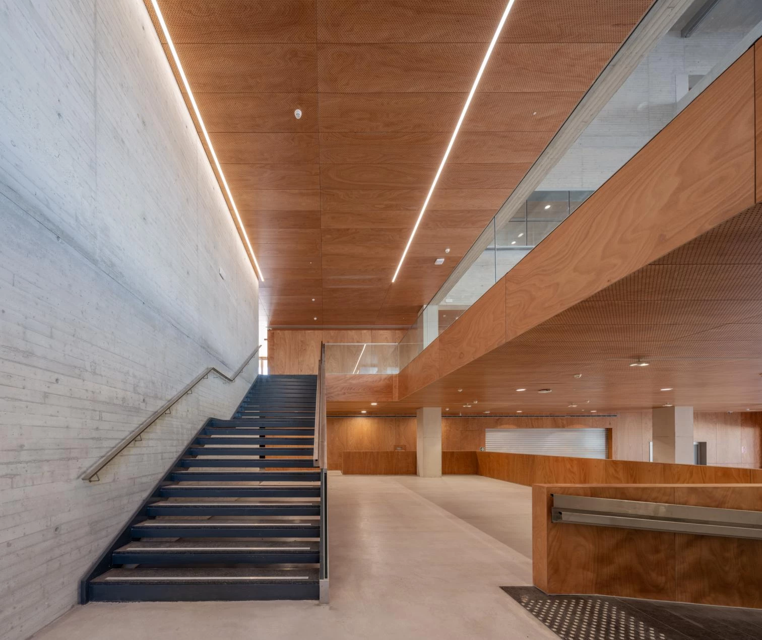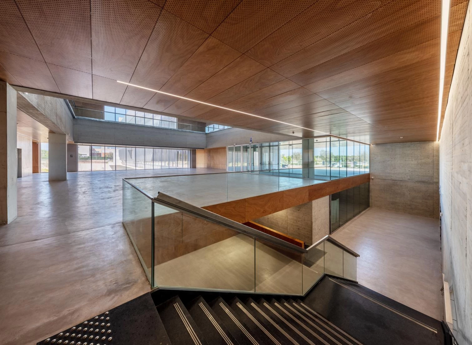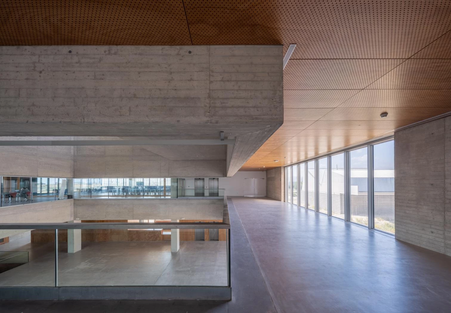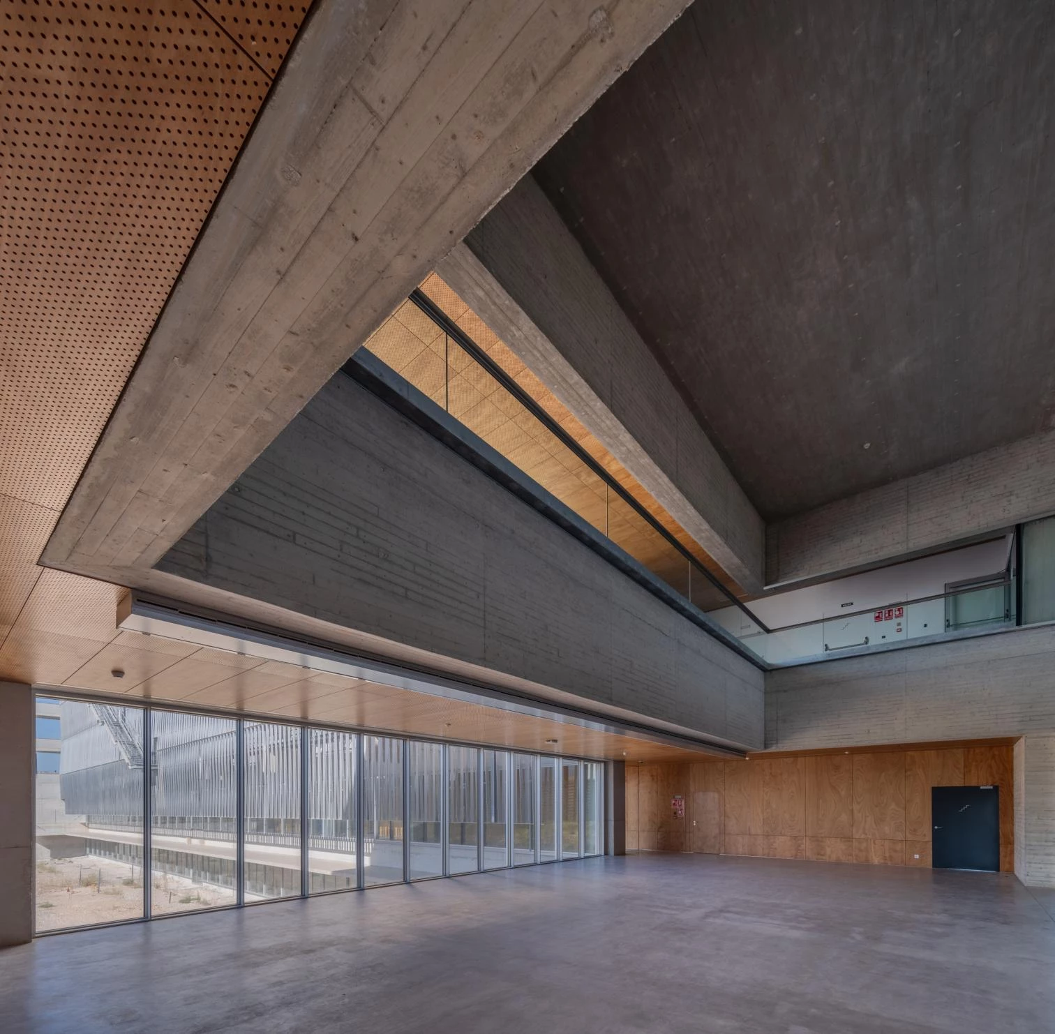 Las galerías, además de espacios de tránsito, estancia y relación, constituyen un sistema pasivo de regulación térmica del edificio. La sucesión lineal de pequeños patios atraviesa todos los niveles, que junto a las lamas móviles situadas lateralmente en cada una de las plantas permiten controlar el acceso de aire del exterior.