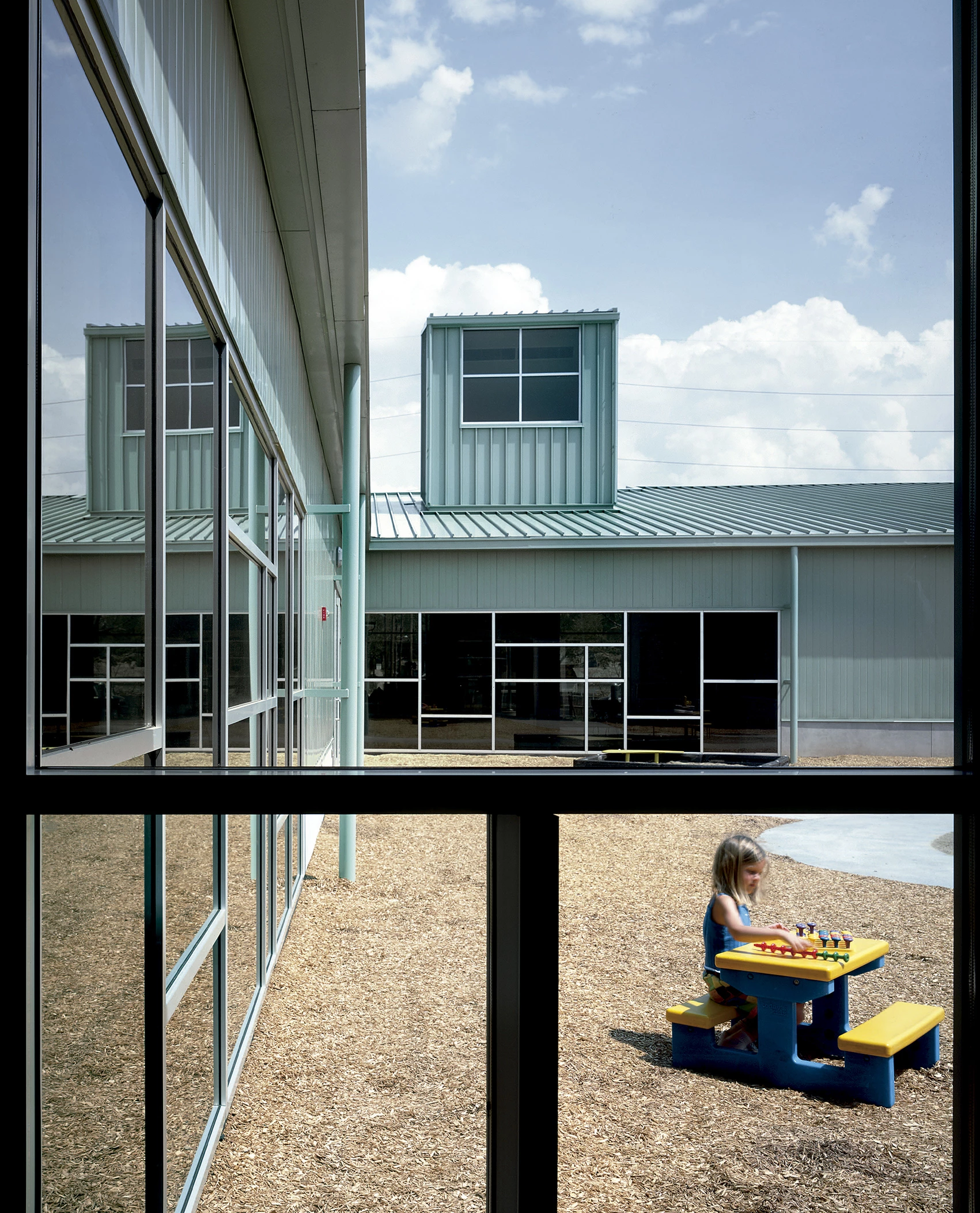 La Cummins Engine Company, una empresa que ejerce su mecenazgo en la pequeña ciudad de Columbus, decidió en 1997 crear un centro de cuidado infantil destinado tanto a sus empleados como al público general. La dotación, de una planta y algo más de 2.000 metros cuadrados, ocupa una parcela en esquina situada en medio del complejo fabril de la compañía. Bordeado por un cuidado riachuelo al oeste y por un puente recientemente ampliado por el norte, el enclave se abre, por un lado, a un modesto barrio residencial y, por el otro, a la Central Avenue, una calle cuyas generosas áreas ajardinadas se deben al legendario paisajista Dan Kiley.