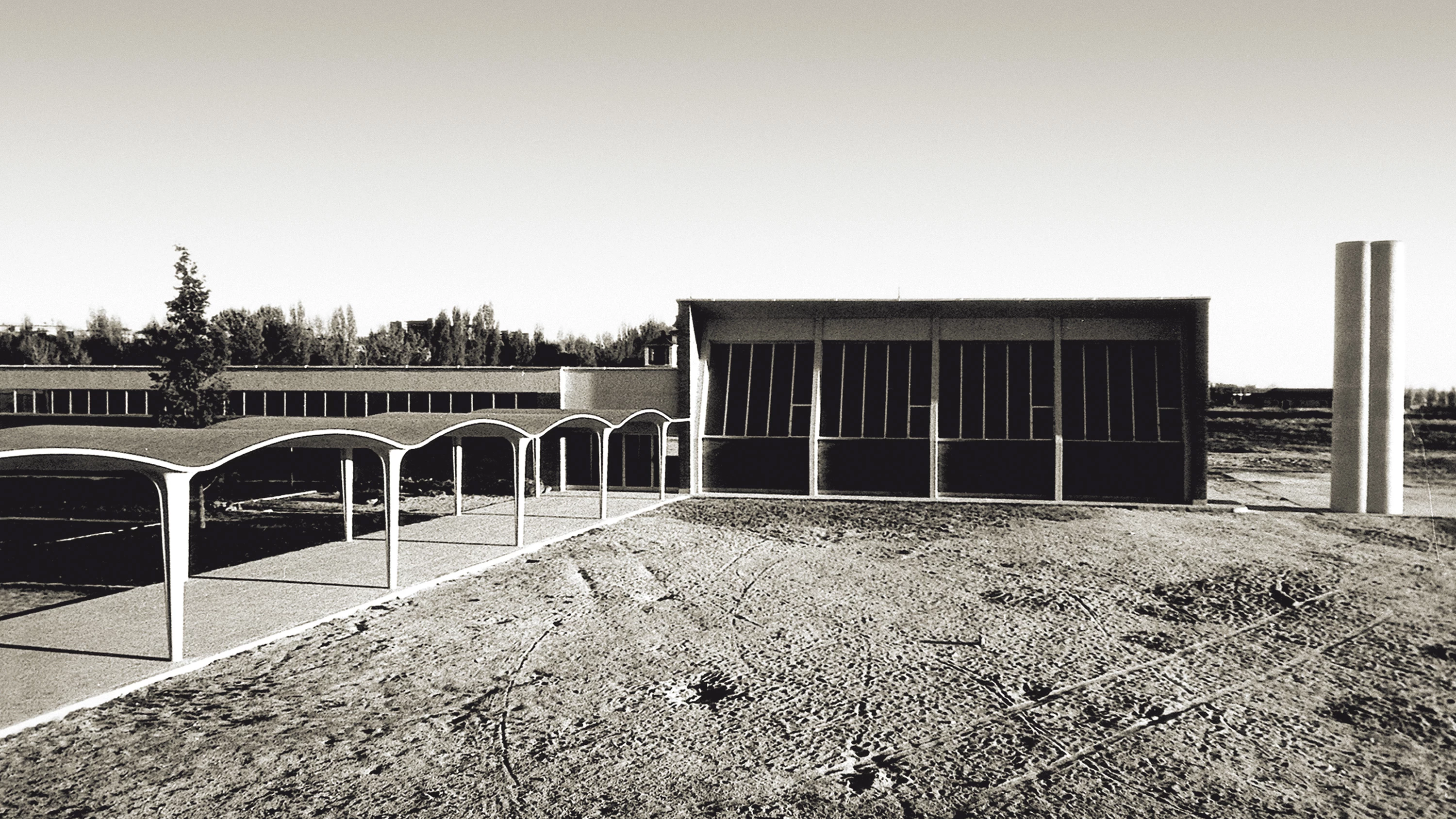 Realizados sólo en parte, los pabellones del Centro de Formación del Profesorado levantados junto a la carretera de La Coruña muestran con una volumetría diferenciada la función que albergan. Los cuerpos de ladrillo ocupados por la zona de acceso, las aulas, las oficinas o las clases prácticas encuentran su hilo conductor en una ligera marquesina ondulada de hormigón.