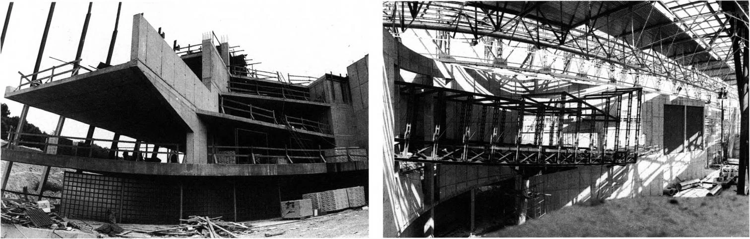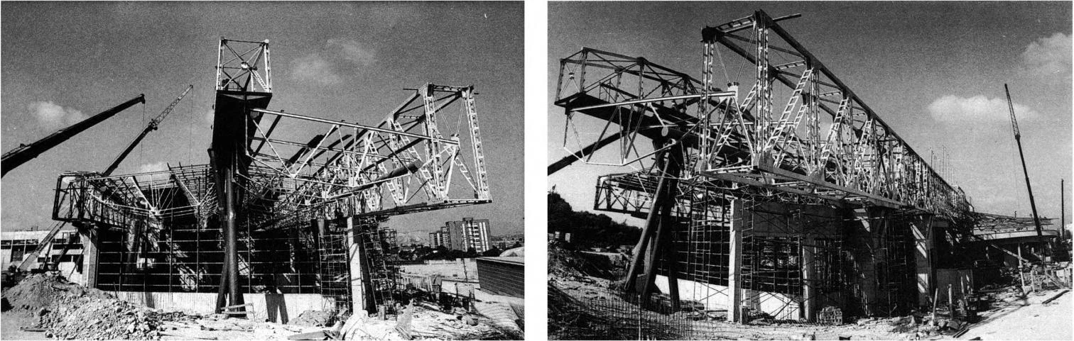 La complejidad espacial del proyecto se hace patente en las imágenes del proceso de construcción del área de gimnasia rítmica.