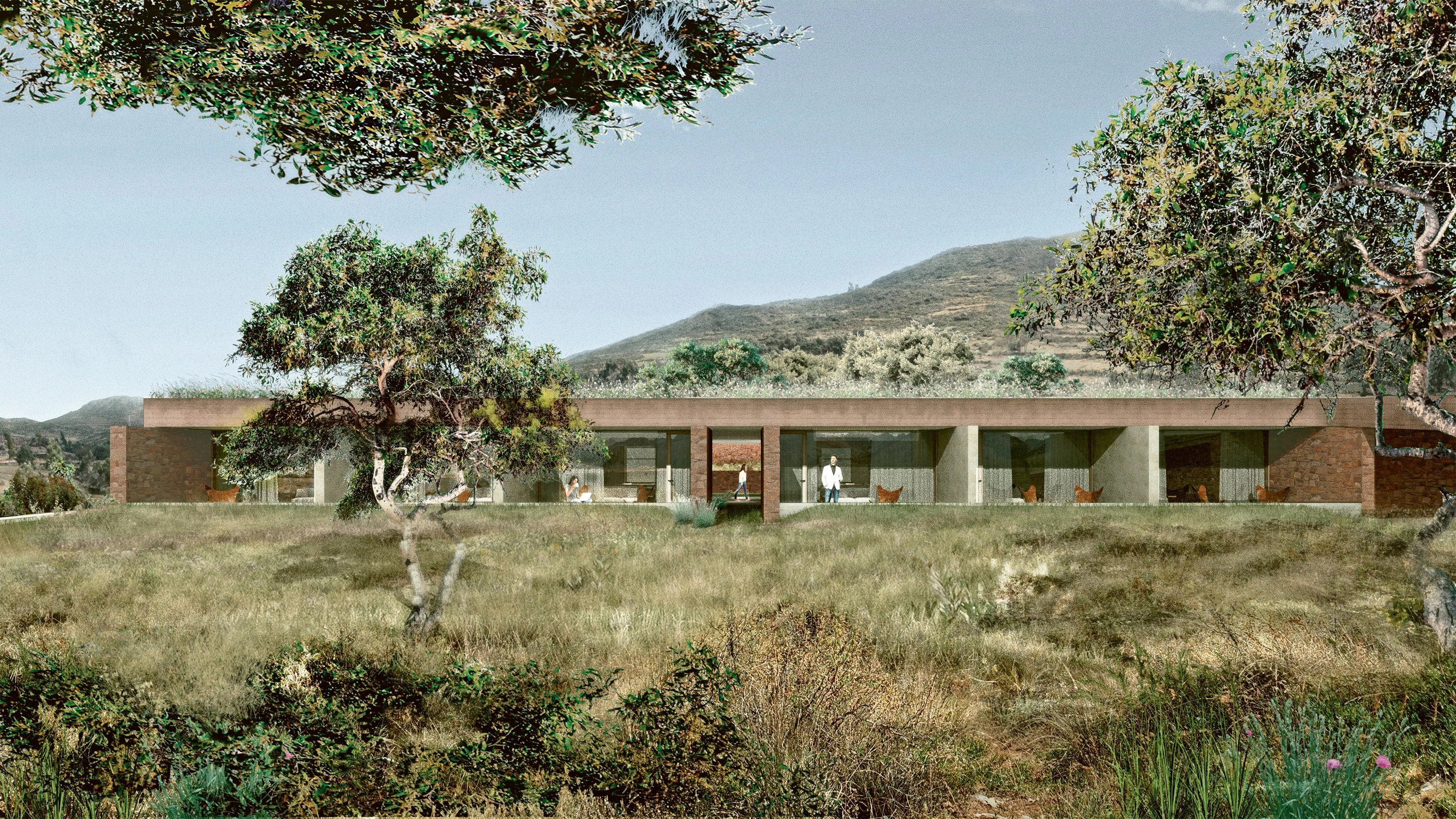 Las terrazas circulares de Moray conforman el laboratorio agrícola Inca más importante conocido hasta la fecha. Ganadora de un concurso internacional, la propuesta concentra la investigación en la gestión de los recursos hídricos estudiando las infraestructuras ancestrales de retención de agua con las que se construyó el paisaje andino. El edificio se concibe como una infraestructura habitable que combina diversas técnicas tradicionales para alcanzar la autonomía del centro durante todo el año, pudiendo generar un excedente que se comparte con las comunidades vecinas en la temporada seca. Para crear un medio habitable a 3.800 metros de altitud, se adoptaron las estrategias que los Incas empleaban en sus intervenciones en el territorio, basadas en la economía de medios y la inteligencia en el uso de los recursos. Así, el conjunto se organiza en una planta longitudinal dispuesta a lo largo de la cumbrera de la colina, aprovechando la topografía existente y la orientación, en una precisa combinación de excavación y relleno para iluminar los interiores y crear patios protegidos del viento. Las cubiertas planas, en continuidad del suelo natural, recogen el agua que luego es almacenada en un depósito circular (qocha) dispuesto en el centro del área pública. Para terminar, los muros se revisten con piedra andesita roja local...[+]
