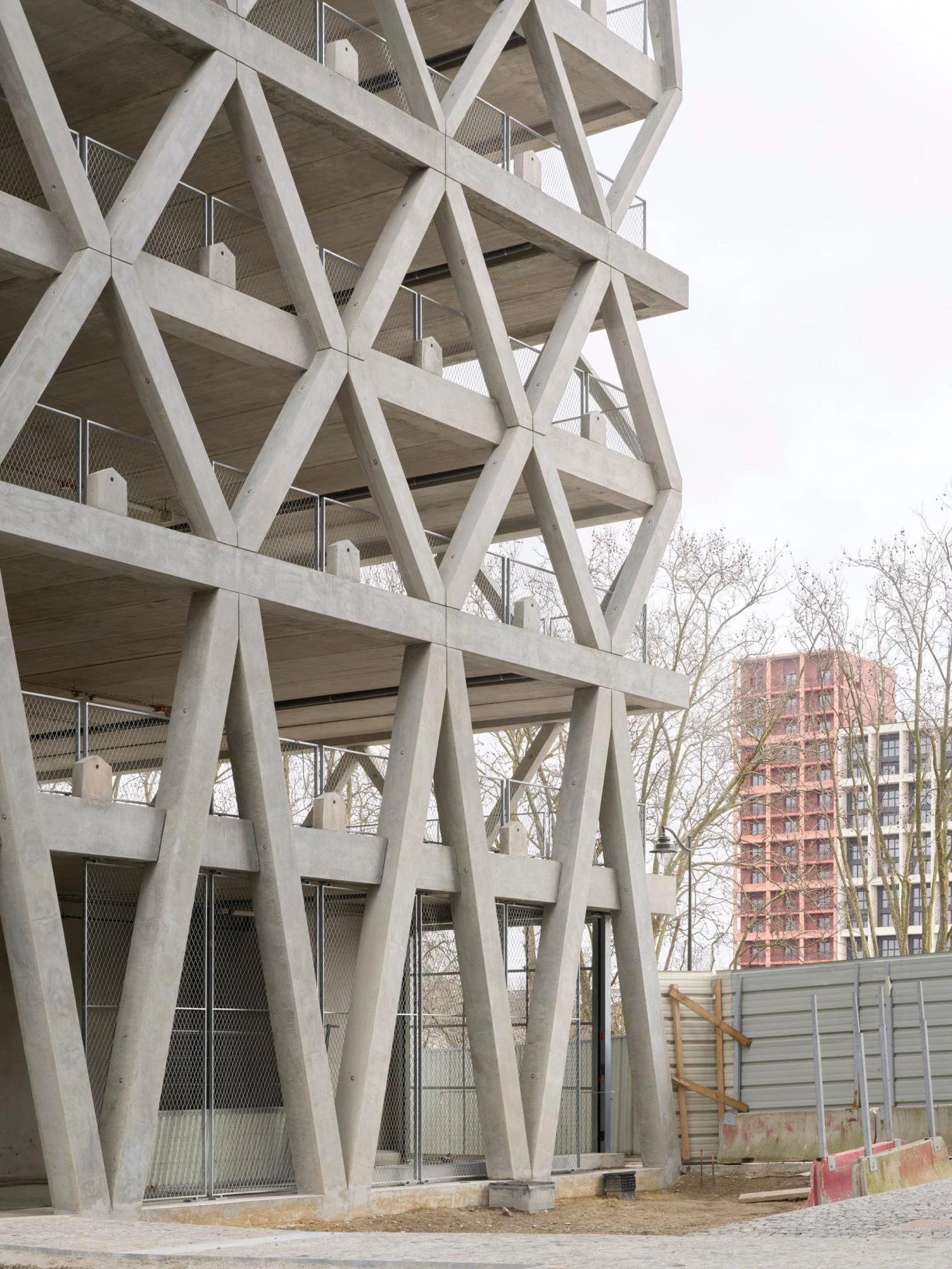 Con motivo de los Juegos Olímpicos de París 2024 se levanta este proyecto en L'Île-Saint-Denis, que cuenta con siete niveles, liberando al barrio de vehículos. El sistema de arriostramiento estructural está incluido en el diseño de la fachada y todo el centro actúa como un punto de referencia para la Villa Olímpica, frente a un parque, el río Sena y la principal carretera de circunvalación de París. En el interior, un número mínimo de puntos de apoyo permite maximizar la flexibilidad y la capacidad, reduciendo la huella de carbono, ya que no se añade una segunda piel. Obra de Martin Duplantier, el Centro de Movilidad consta de 392 plazas para vehículos, 20 plazas para motocicletas y zona de aparcamiento para bicicletas. La búsqueda de una construcción reversible y escalable, así como el enfoque de bajas emisiones de carbono, guiaron el proyecto.