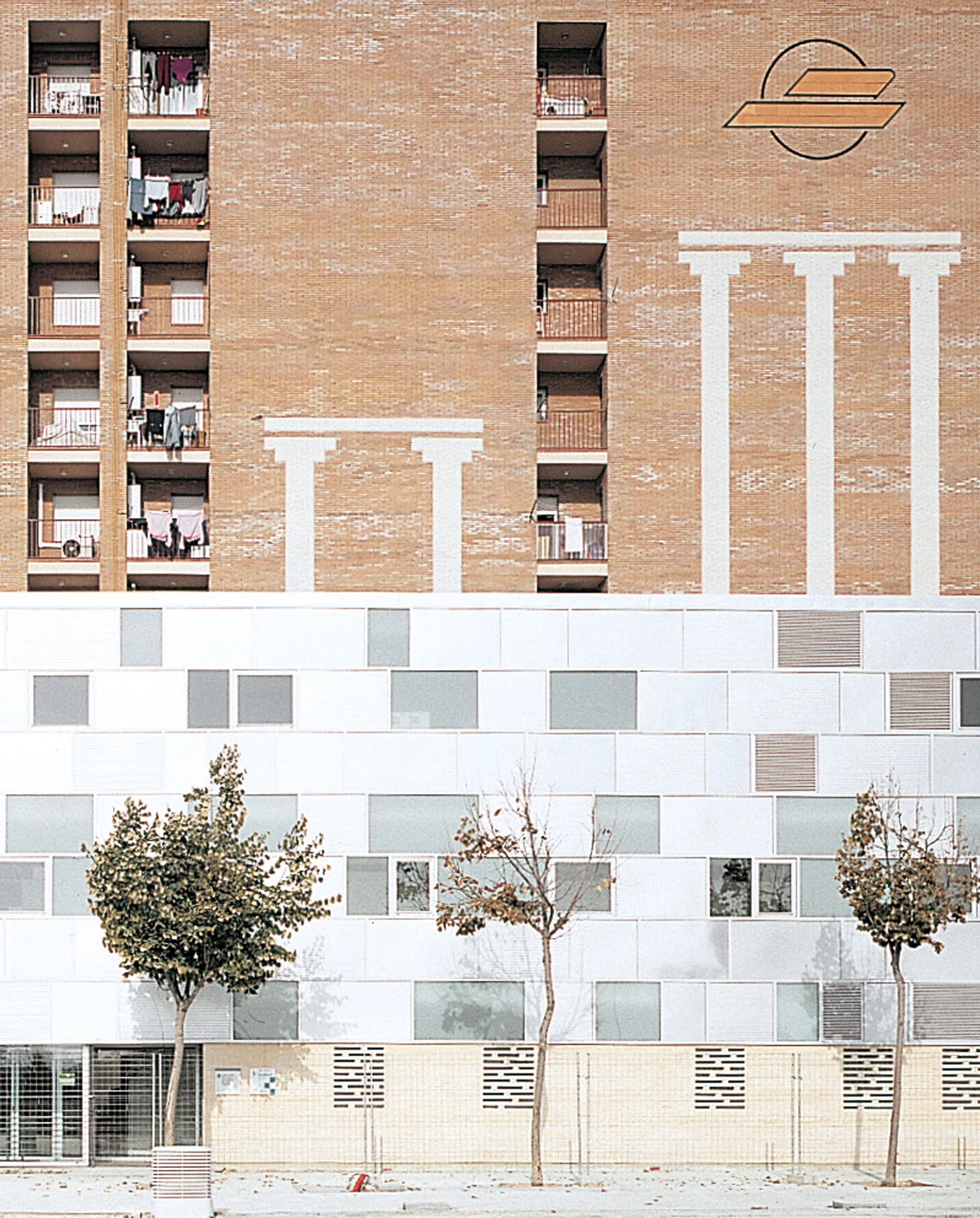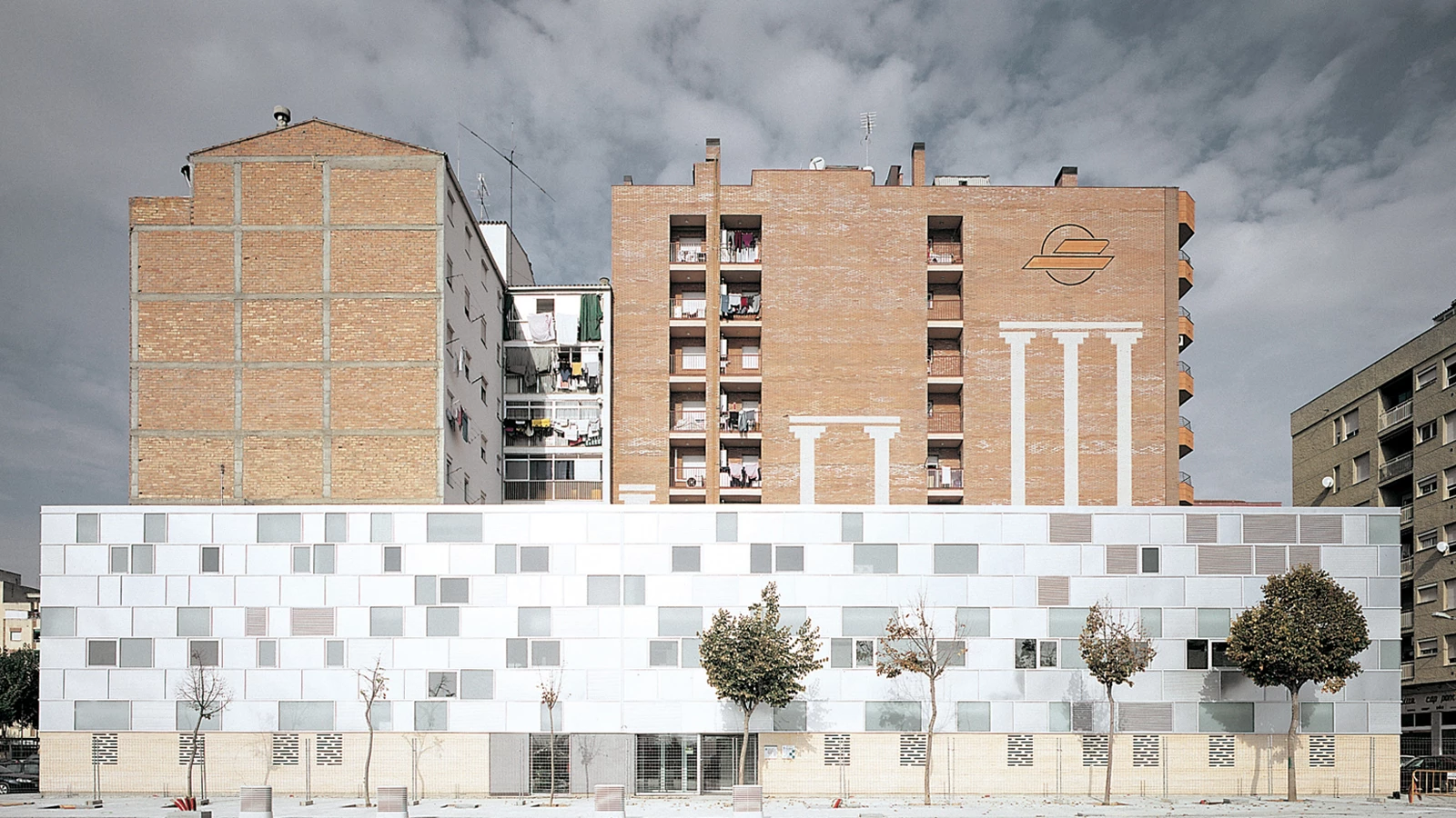 En el límite de la ciudad consolidada y mirando hacia la ciudad que está por venir, el centro de salud que atenderá a los ciudadanos de un nuevo barrio de Lérida debe afirmar su identidad como equipamiento público. Sobre un solar que forma parte de una manzana cerrada y con dos gigantescos paños cerámicos a sus espaldas, el proyecto desafía a la masa construida en la que se encuentra inmerso: grandes bloques residenciales, con cuyo volumen el exiguo programa del centro no puede aspirar a competir. Para significarse y con la vocación de llegar a ser el telón de fondo de las construcciones que en un futuro se levantarán perpendiculares a la vía pública, el edificio sanitario se concibe como un cartel.