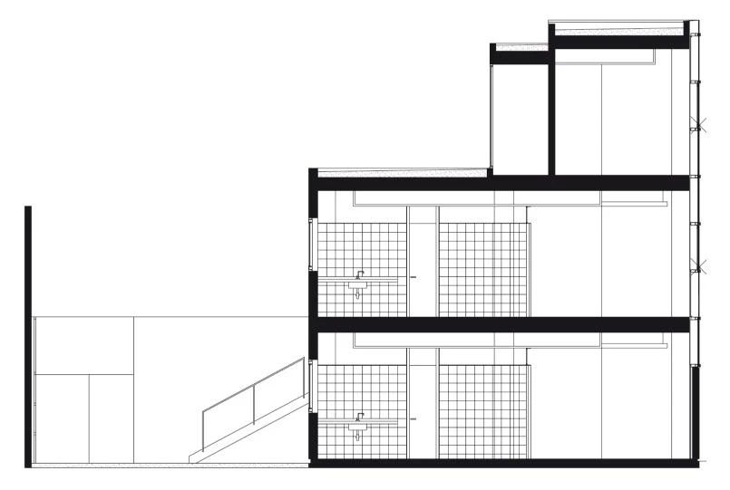 Para aumentar el volumen del centro y subrayar su dimensión pública, se ha añadido un tercer nivel a las dos plantas de consultas, de manera que el edificio se escalona hacia el norte, mejorando el soleamiento del patio.