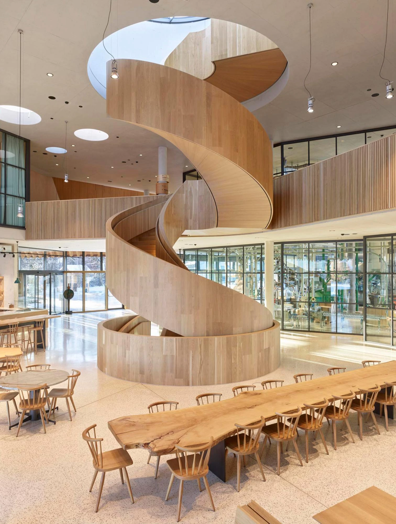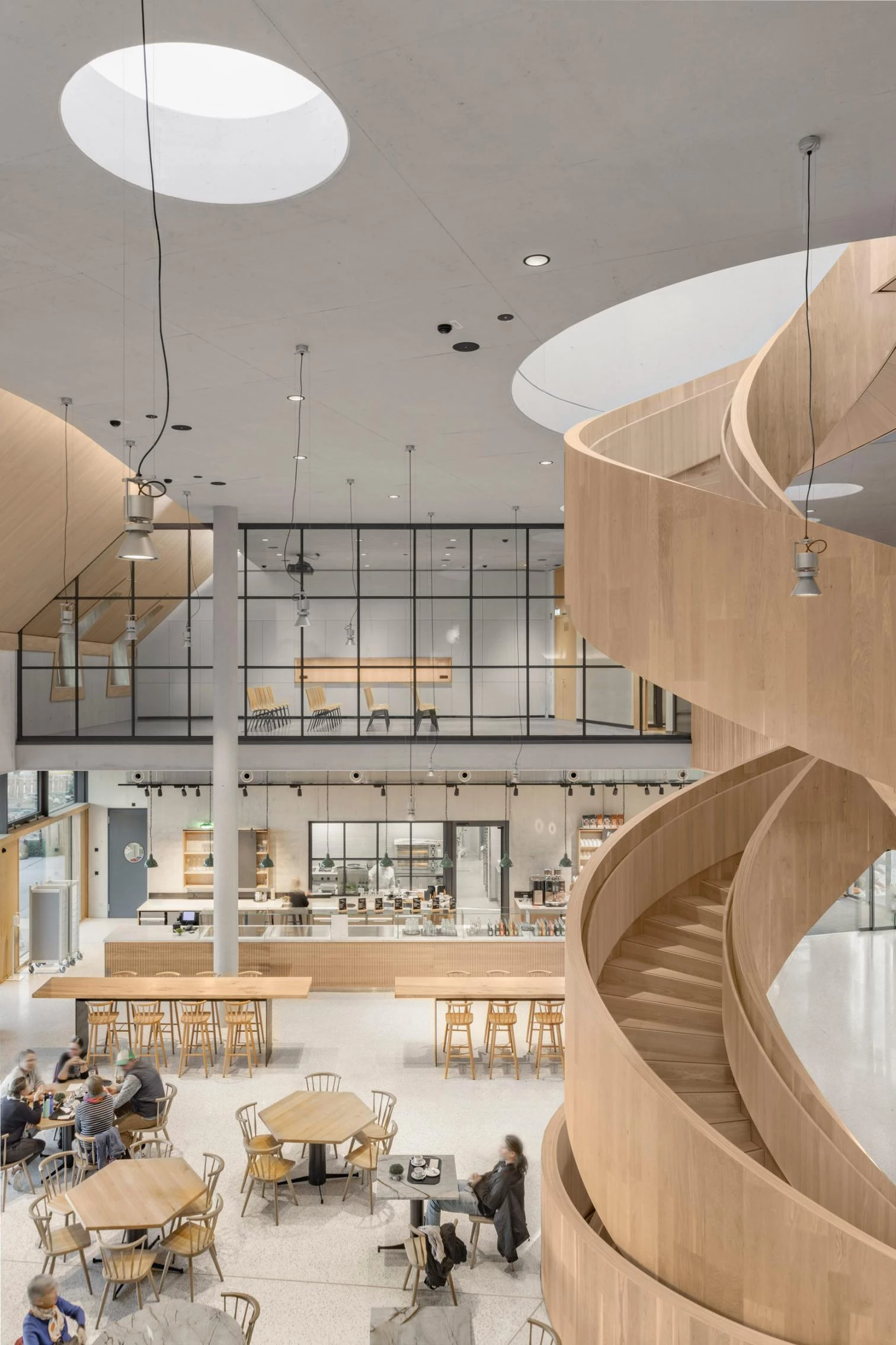 La firma de Stuttgart haascookzemmrich STUDIO2050 —fundada por Martin Haas, David Cook y Stephan Zemmrich— ha sido la encargada de proyectar este centro para el productor de alimentos orgánicos Rapunzel Naturkost en el municipio bávaro de Legau.