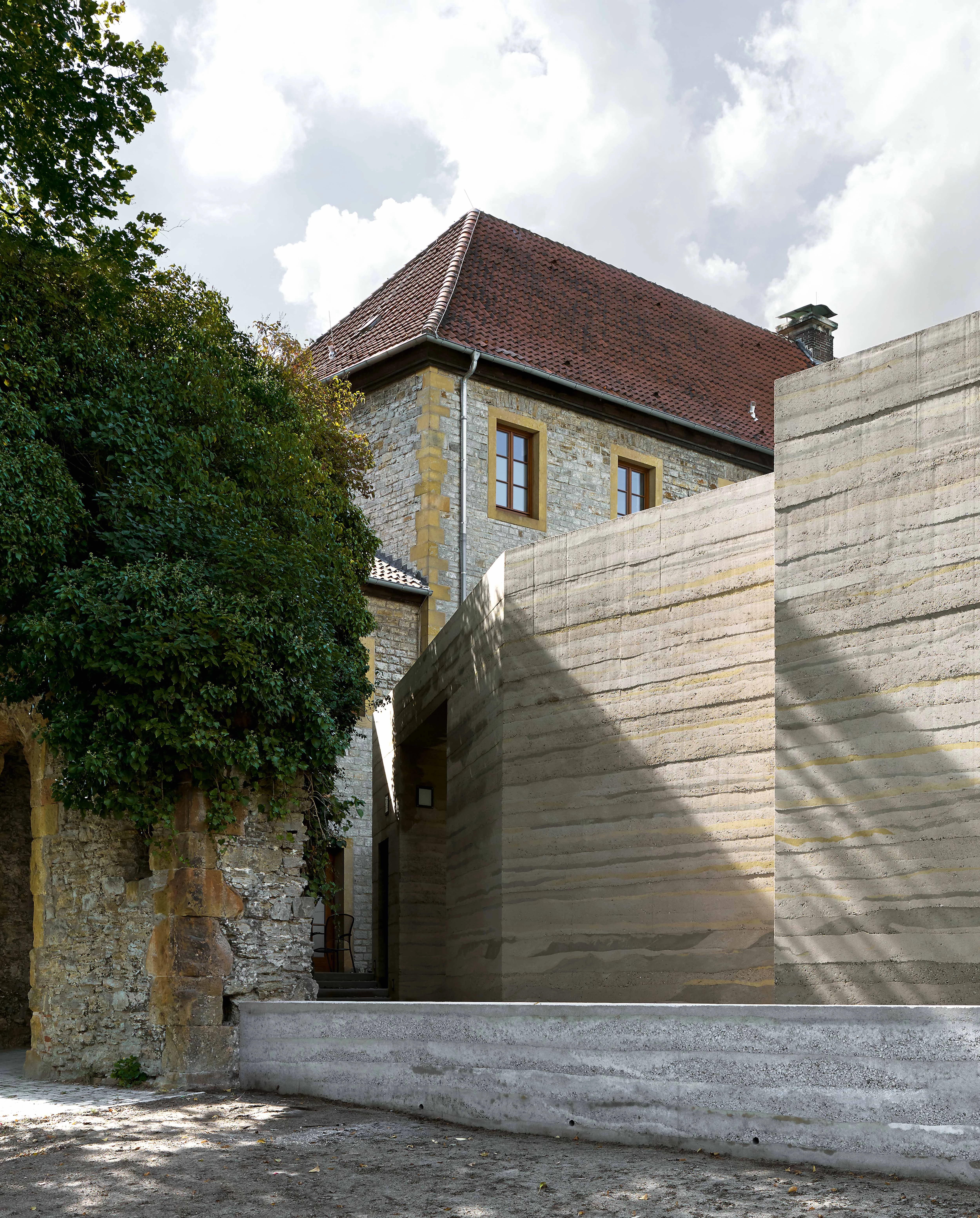 Los dos nuevos volúmenes que se erigen en la ciudad alemana de Bielefeld tienen por objetivo acentuar y estrechar la relación existente entre dos de los elementos estructurales de la urbe —la fortaleza medieval de Sparrenburg, construida en el siglo XIII; y el parque de Johannisberg, en funcionamiento como tal desde el siglo XIX—, y así generar una identidad común que realce el valor y la importancia simbólica de ambos lugares. El primero de ellos, un centro para los visitantes del castillo, se aproxima a la muralla de este y toma su forma de una interpretación del perímetro mural; por su parte, el punto de información para el parque es paralelepipédico y se sitúa de manera aislada con respecto a su entorno. A pesar de sus evidentes diferencias formales, los dos edificios comparten un lenguaje material, espacial y estético que se traduce en una idéntica utilización del hormigón gris comprimido por capas; en unas dimensiones equiparables; en una similar distribución interior, que organiza el espacio siguiendo un patrón modular y ortogonal; y en un tratamiento parejo de la fachada y de los huecos. En este sentido, el comportamiento conjunto de las dos obras se asemeja al de una pareja de mellizos: aunque sus diferencias sean esenciales, ciertos rasgos que los caracterizan son, al tiempo, lo suficientemente coherentes como para hermanarlos.