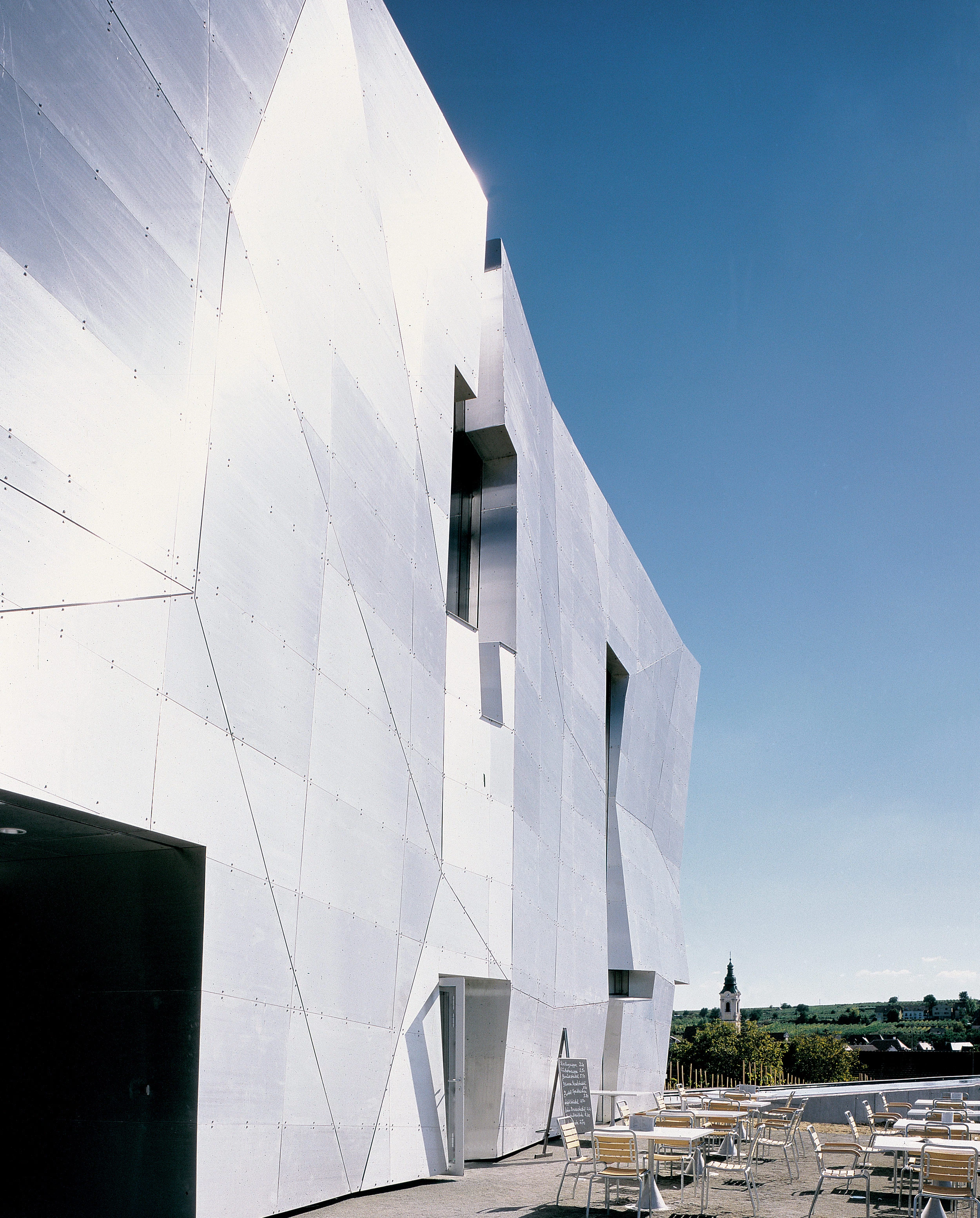 En la pintoresca villa austriaca de Langenlois, dedicada desde hace más de 900 años a la elaboración de vinos blancos espumosos, se ha construido un nuevo Centro del Vino, parte de un complejo cultural y recreativo que pretende dar a conocer internacionalmente la localidad y atraer visitantes de todo el mundo, aprovechando el incremento del turismo relacionado con la producción vinícola. El proyecto completo se compone de tres partes que se relacionan entre sí a lo largo de la ligera pendiente de un viñedo y que establecen, cada uno, una relación distinta con el terreno: bajo el suelo, la red de túneles de las antiguas bodegas; sobre éste, el propio centro; y por encima, otro edificio (aún sin materializar) que incluye un hotel, un restaurante, instalaciones para conferencias y un balneario.