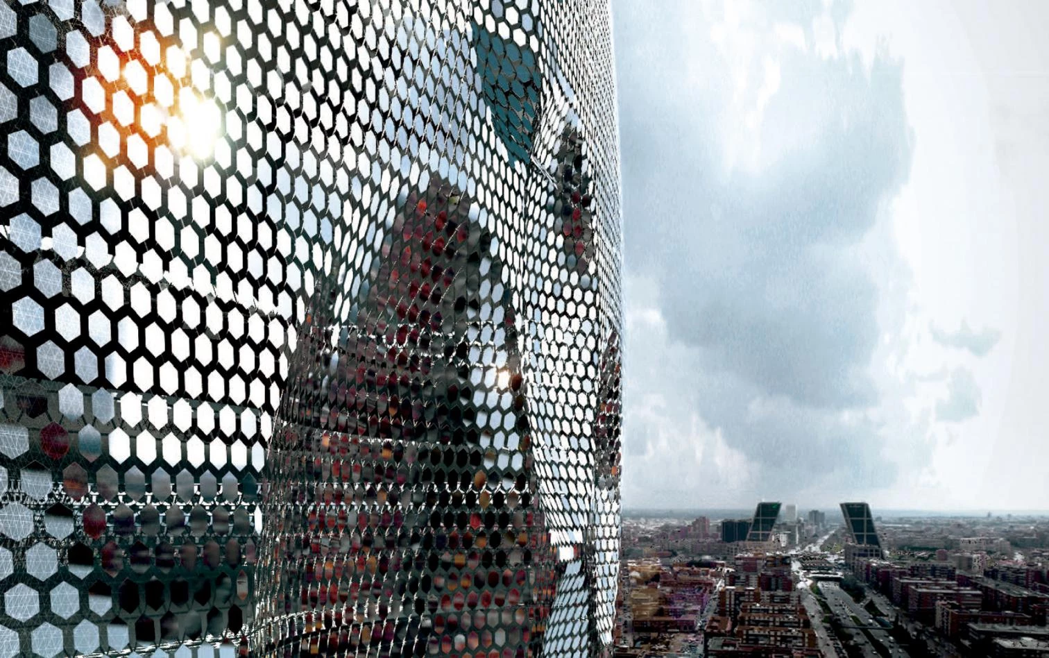 Entre finales del 2006 y comienzos del 2007, el Ayuntamiento de la capital convocó un concurso para el diseño del nuevo Centro Internacional de Convenciones de la Ciudad de Madrid (CICCM) sobre los antiguos terrenos de la Ciudad Deportiva del Real Madrid, al norte del eje de la Castellana, y cuando ya comenzaban a alzarse los cuatro grandes rascacielos privados que surgieron tras la recalificación de estos terrenos. El proyecto de los arquitectos Mansilla, Tuñón y Peralta resultó ganador del concurso, en el que también participaron los equipos de Nuno de Castro Montenegro, Arkitema, S-MAO, Soriano y Asociados con SENER y UP Arquitectos. Su propuesta constituía un gran disco vertical y perforado, un ‘sol naciente’ optimista y luminoso que partía de la necesidad de hacer presente la edificación pública, estableciendo una relación de igual a igual con las construcciones privadas, y rechazando por tanto una condición de simple basamento horizontal.