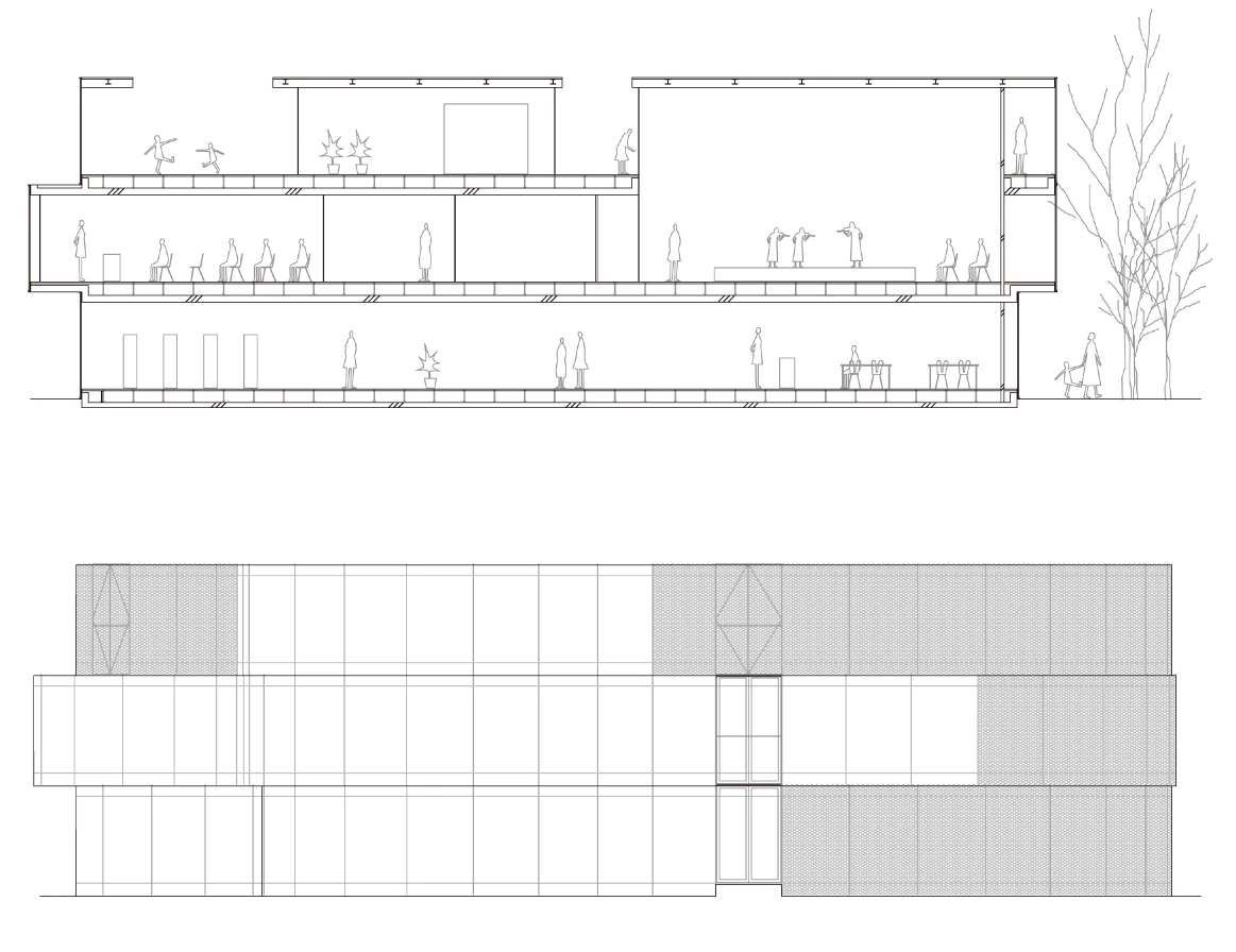 Las zonas de actividades se envuelven con paramentos de vidrio —a excepción de las salas auditorio, que además son de doble altura—. El centro se concibe para que el público pueda acudir sin un propósito concreto, y que se compartan todas las actividades; para ello pretende ser abierto y transparente, y que la gente pueda percibir el exterior desde dentro, con espacios luminosos y diáfanos. La envolvente vidriada permite crear conexiones con el entorno, y varias aberturas en el forjado de cubierta crean espacios de terraza en la planta superior para disfrutar el paisaje.
