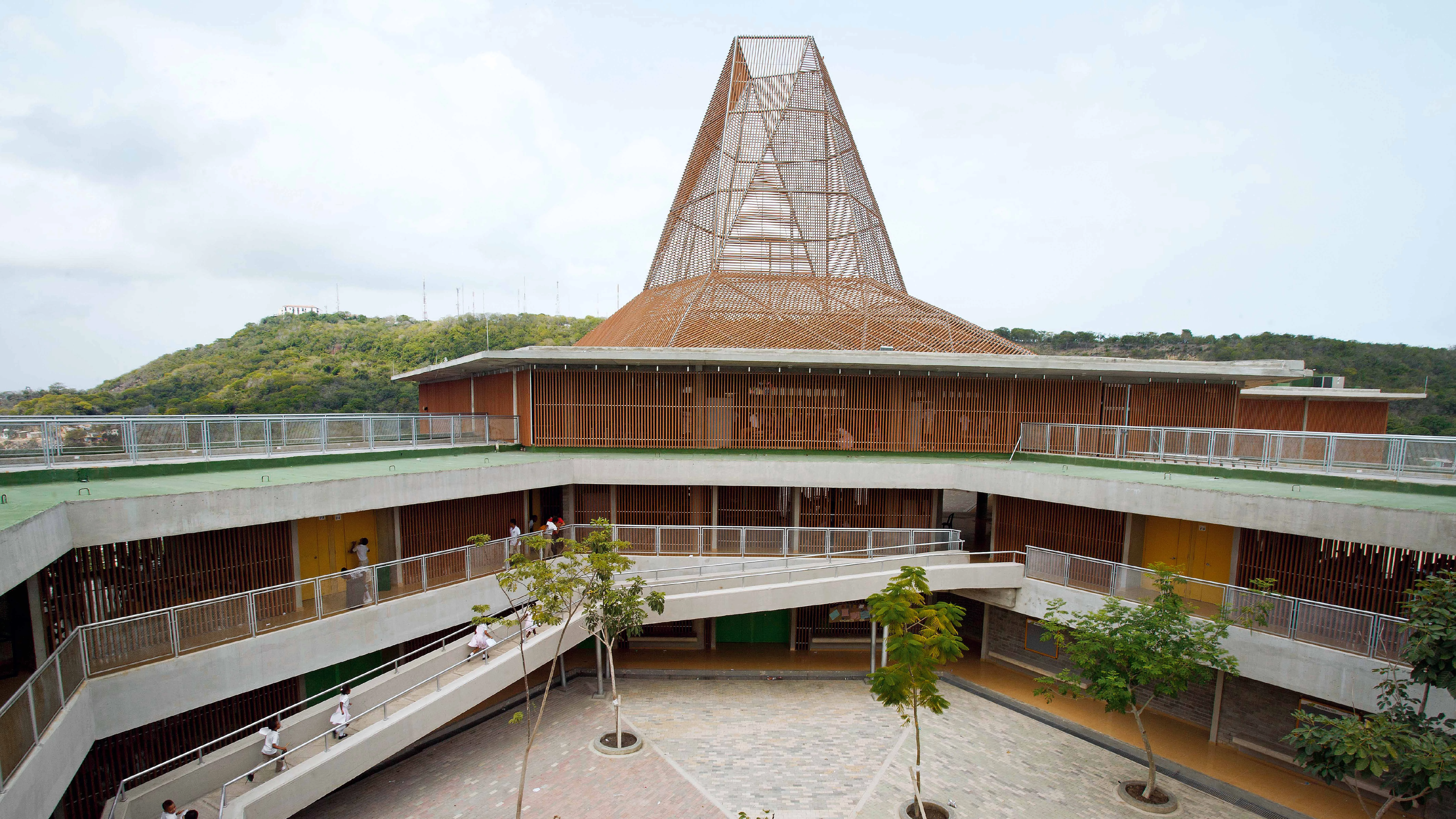 Situado en la cima de la Loma del Peyé, al noreste de la ciudad, el megacolegio para la Fundación Pies Descalzos se concibió como un proyecto arquitectónico y urbanístico con gran impacto social que fuera capaz de consolidarse como potente motor de cambio para los habitantes de la zona —una de las más deprimidas de Cartagena de Indias— y, por extensión, de toda la región. El edificio debía contribuir a mejorar las condiciones de vida de los ciudadanos, generando alternativas de desarrollo personal y comunitario, iniciar la transformación de su entorno y convertirse a la vez en un hito urbano, un símbolo del barrio informal donde se asienta con la capacidad de generar apropiación y orgullo en sus habitantes. Entre los principales objetivos estaba también la construcción según estrategias sostenibles para conseguir un edificio que garantizara el confort de los usuarios utilizando la mínima cantidad de recursos.