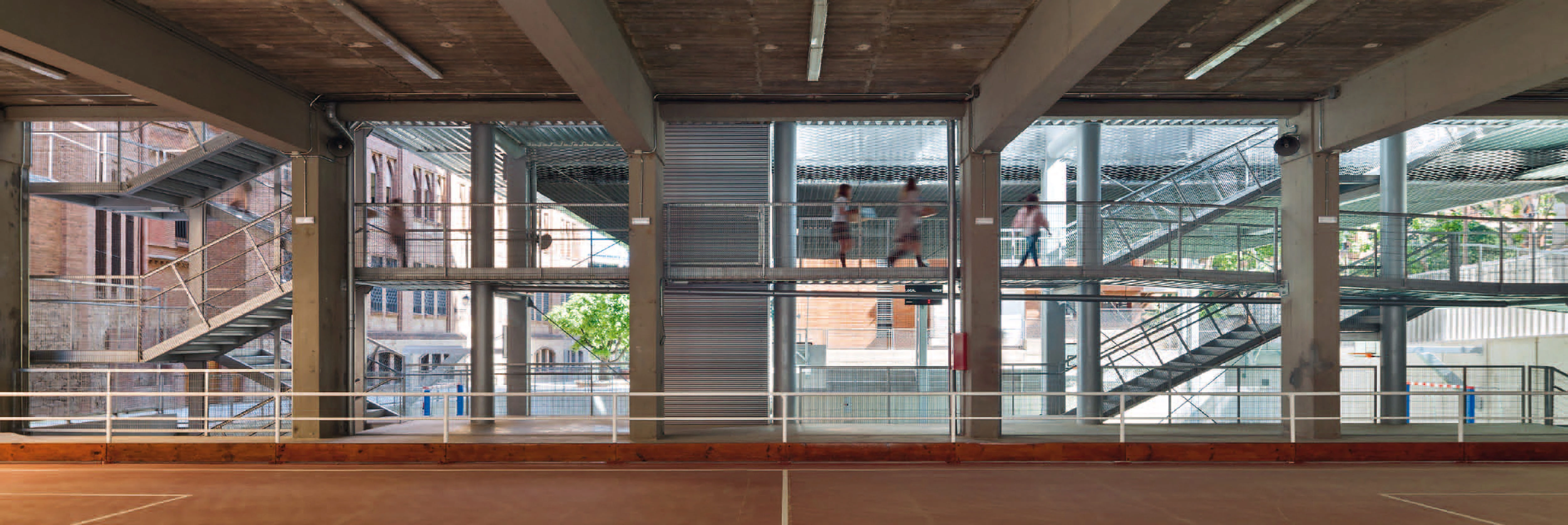 Respetando la visibilidad del pabellón de Gaudí, la ampliación reorganiza los espacios de aulas y dota al colegio de un nuevo espacio deportivo cubierto; el proyecto busca minimizar el consumo en climatización y en renovación del aire.