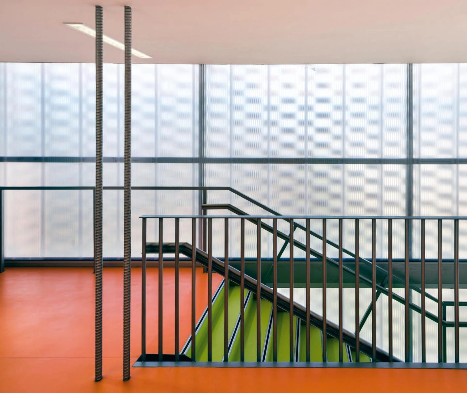Una doble piel tamiza térmica y lumínicamente el interior flexibilizando al tiempo la distribución de huecos: hacia el interior, elementos ligeros y luminosos; hacia la calle una celosía tejida de piezas cerámicas.