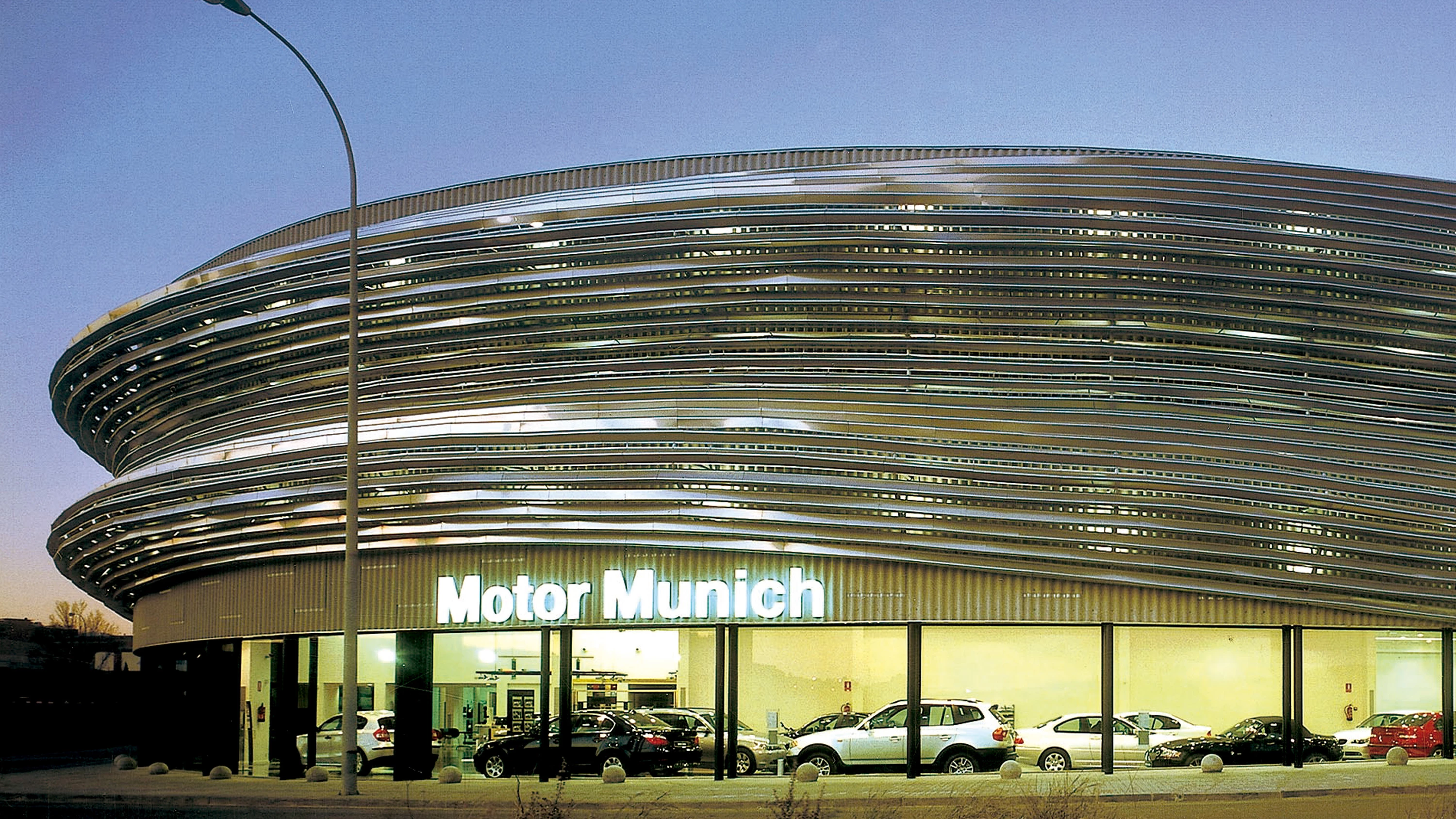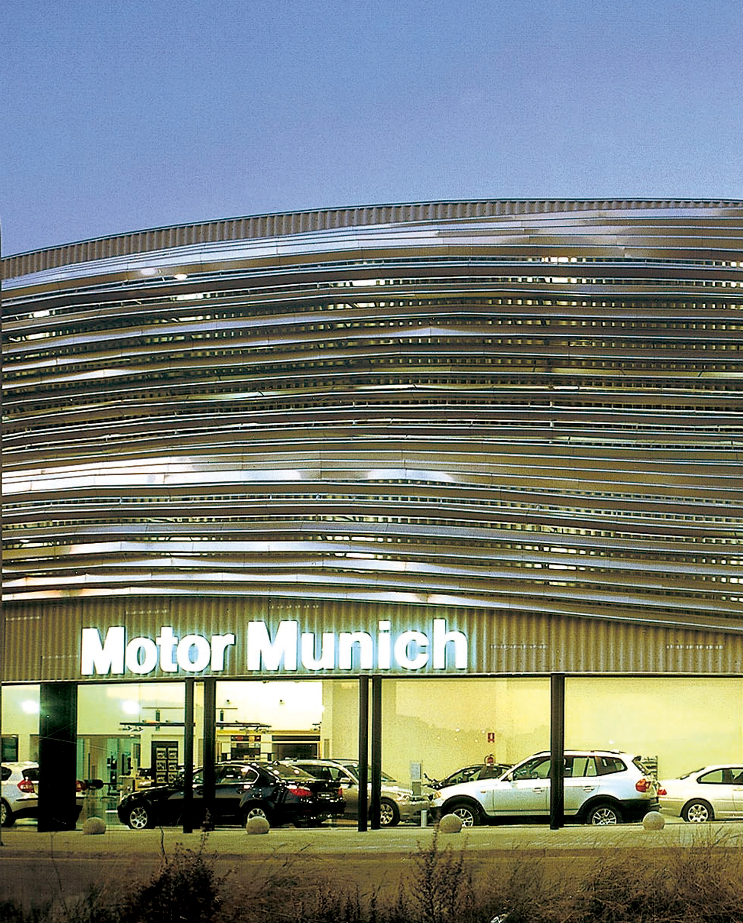 Llegando al polígono industrial situado al sur de Sabadell desde la autovía Barcelona-Terrasa se ve brillar fugazmente un objeto, ¿es un anuncio o un edificio?. Un solar de 4.120 metros cuadrados y 120 metros de fachada en esquina dando hacia la autovía y ocupado por tres naves industriales debía reconvertirse en un concesionario de vehículos de gama alta. La operación ha consistido en completar, distribuir y comunicar las piezas existentes, uniendo el resultado tras una piel curva de acero inoxidable que a modo de gigantesca bionda de protección hace reconocible el edificio desde la carretera. La decisión de completar implica girarse hacia la autopista, ampliando longitudinalmente las edificaciones originales y añadiendo media nave a uno de los lados hasta llegar al límite de la calle. La distribución del programa —sala de exposición y atención al público, servicios de post-venta, zona de talleres y almacenaje de vehículos en planta baja, oficinas y aparcamiento de personal en el nivel superior— viene dada por la altura necesaria para cada actividad; para ello ha sido necesario construir dentro de las naves originales un nuevo nivel con un forja-do y pilares de hormigón paralelos a la estructura metálica existente. La comunicación, entendida también como expresión de carácter de un edificio dedicado al culto a la velocidad, se logra con una fachada que convierte el concesionario en anuncio de sí mismo. Se levanta una estructura metálica para recibir dos envolventes: mediante placas de fibrocemento se construye la que garantiza la estanquidad; la piel exterior se fabrica con planchas mecanizadas de acero inoxidable colocadas horizontalmente en paralelo al viario. Esta cortina de ondas se recoge sobre la entrada para marcar el acceso y dejar a la vista la sala de exhibición de los vehículos. La relación de escala entre las partes vidriadas y la cortina de ondas insinúa dos distancias para mirar el edificio: una desde la autopista, en movimiento, y otra a pocos metros, a punto de entrar... [+]