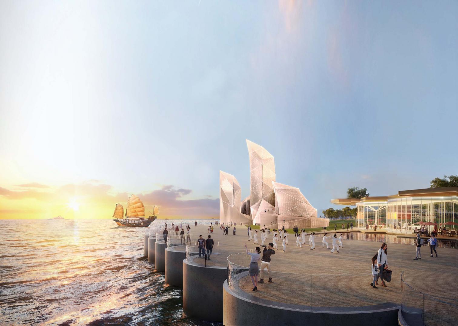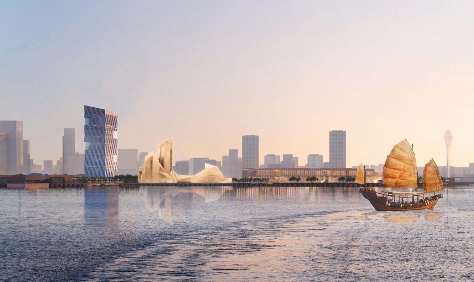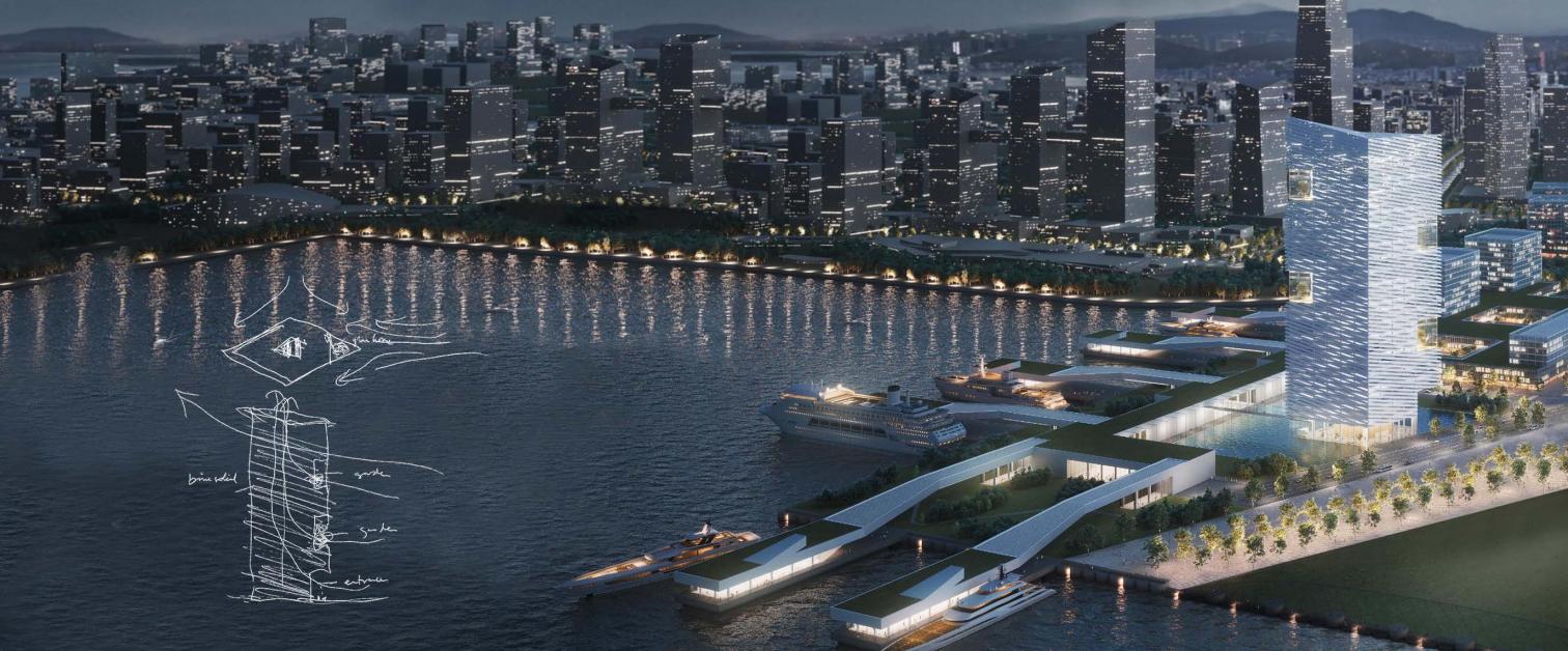 Concurso. En primera fase quedaron seleccionados los siguientes equipos: Abalos+Sentkiewicz, Henning Larsen, Snöhetta, MVRDV y Urbasus. En la fase final fueron seleccionadas las propuestas encabezadas por Ábalos+Sentkiewicz y por Henning Larsen. Los responsables convocantes del concurso, las autoridades regionales de Dongguan, para esta segunda fase permitieron mayor aproximación al mar y mayor altura que los 60 metros impuestos en la primera fase. Se hicieron las entregas definitivas hace dos meses aproximadamente, estando pendiente aún una decisión definitiva.