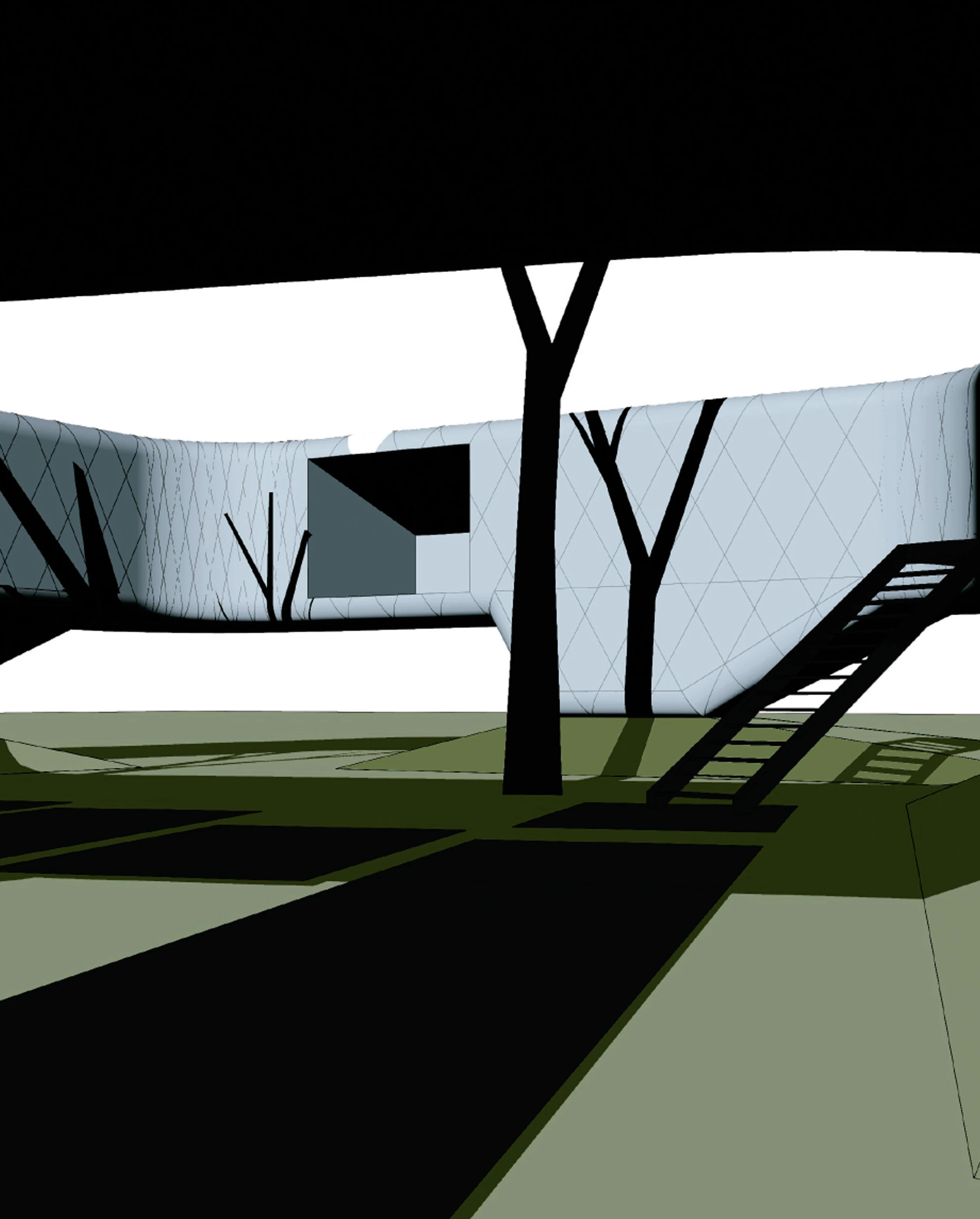 Seis unidades de alojamiento forman parte de este pequeño centro turístico que toma como punto de partida la atención a los tipos arquitectónicos locales, especialmente a aquellos que comportan la máxima extensión en planta, las casaspatio. Para optimizar la disposición de la planta y para fomentar la generación de espacios entrecruzados en sección, se ha manipulado la geometría rotunda y circular de las típicas casas-patio chinas, dando como resultado una suerte de manzana blanda apoyada en cuatro soportes piramidales. Huyendo de referencias demasiado literales, el proyecto reinterpreta en acero los principios de la construcción en bambú. La fachada, compuesta por un revestimiento translúcido textil que incorpora aislamiento pretende lograr una atmósfera interior blanca y reflexiva de día mientras que de noche, el edificio aparecerá como una lámpara en el parque.