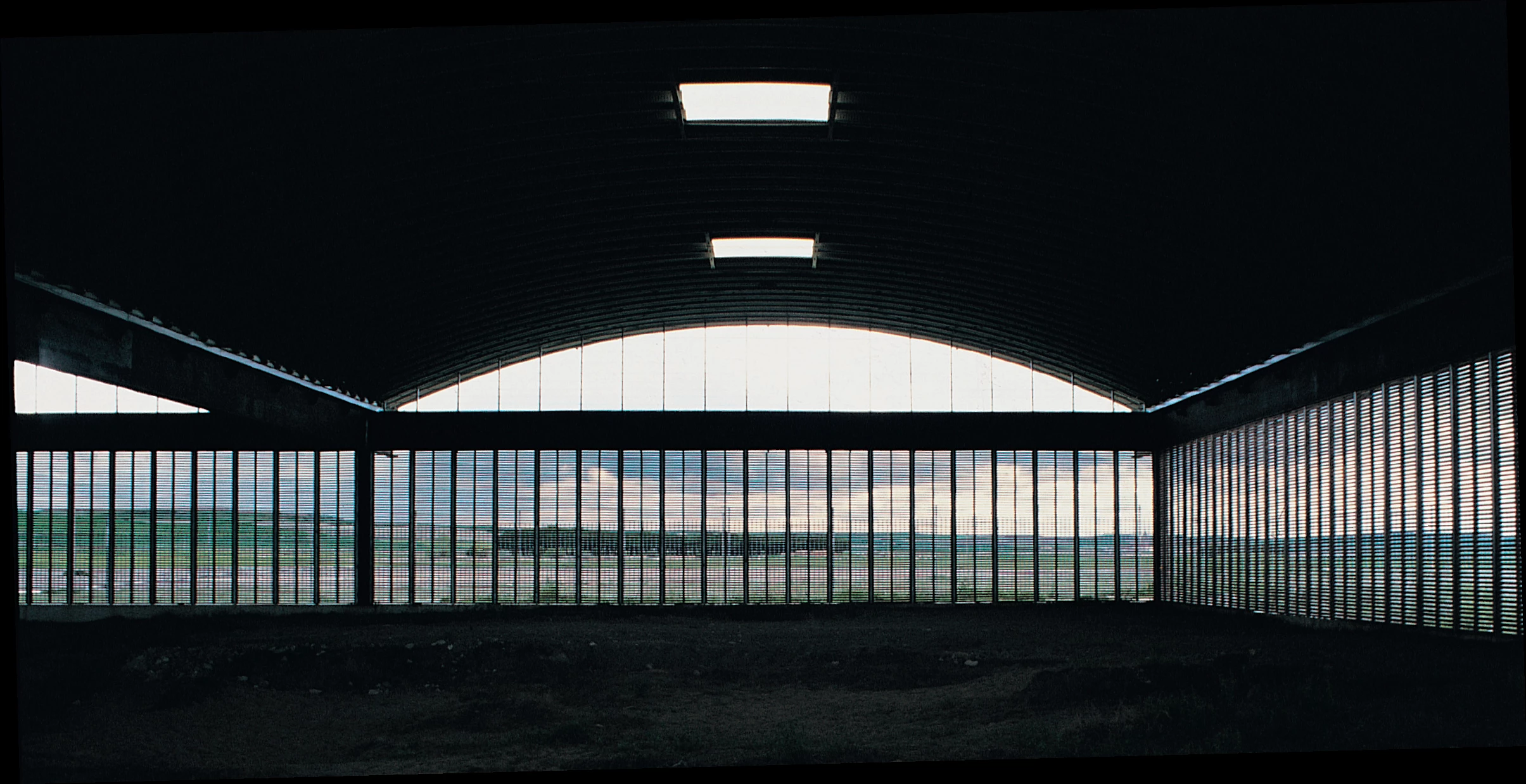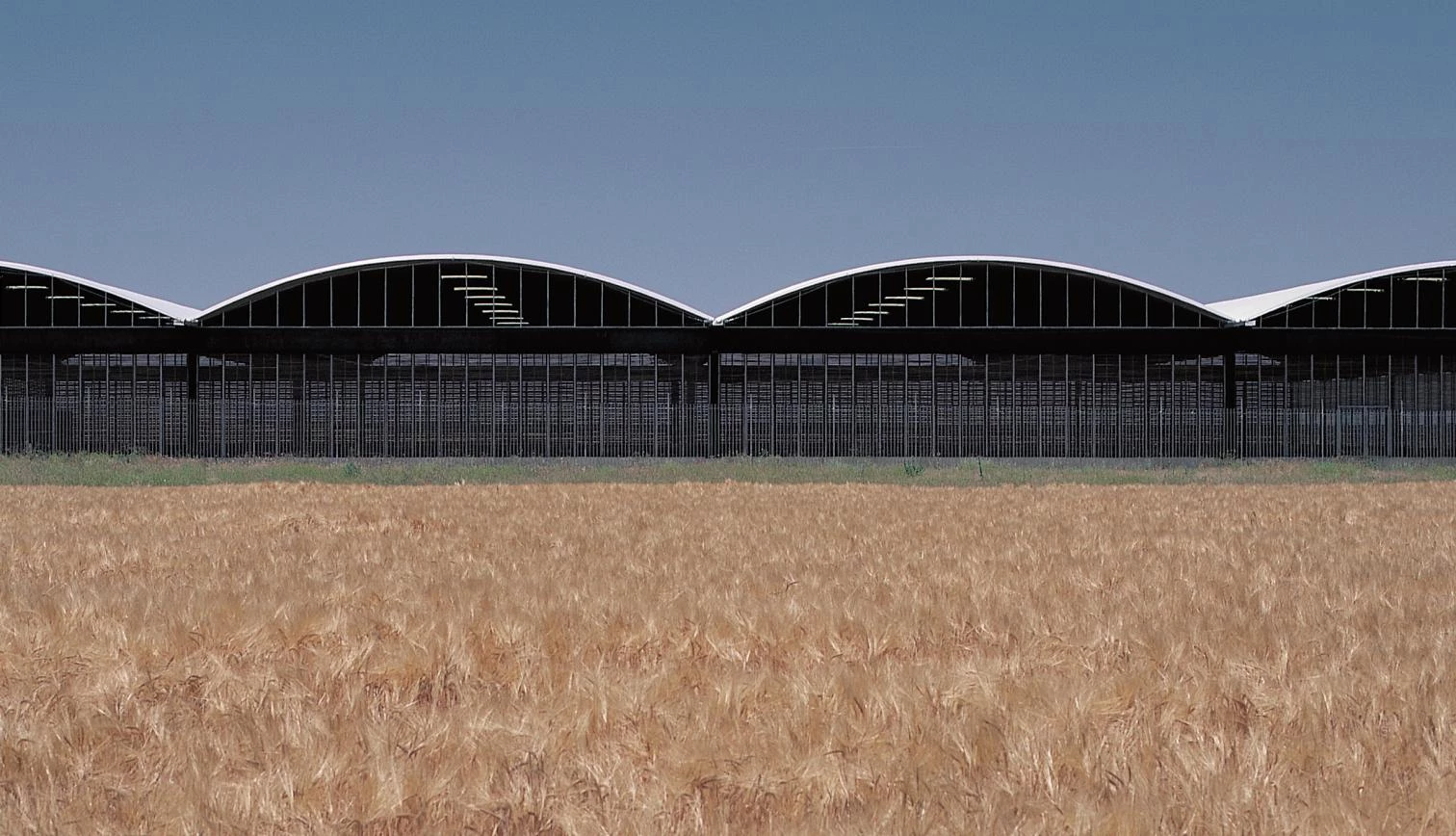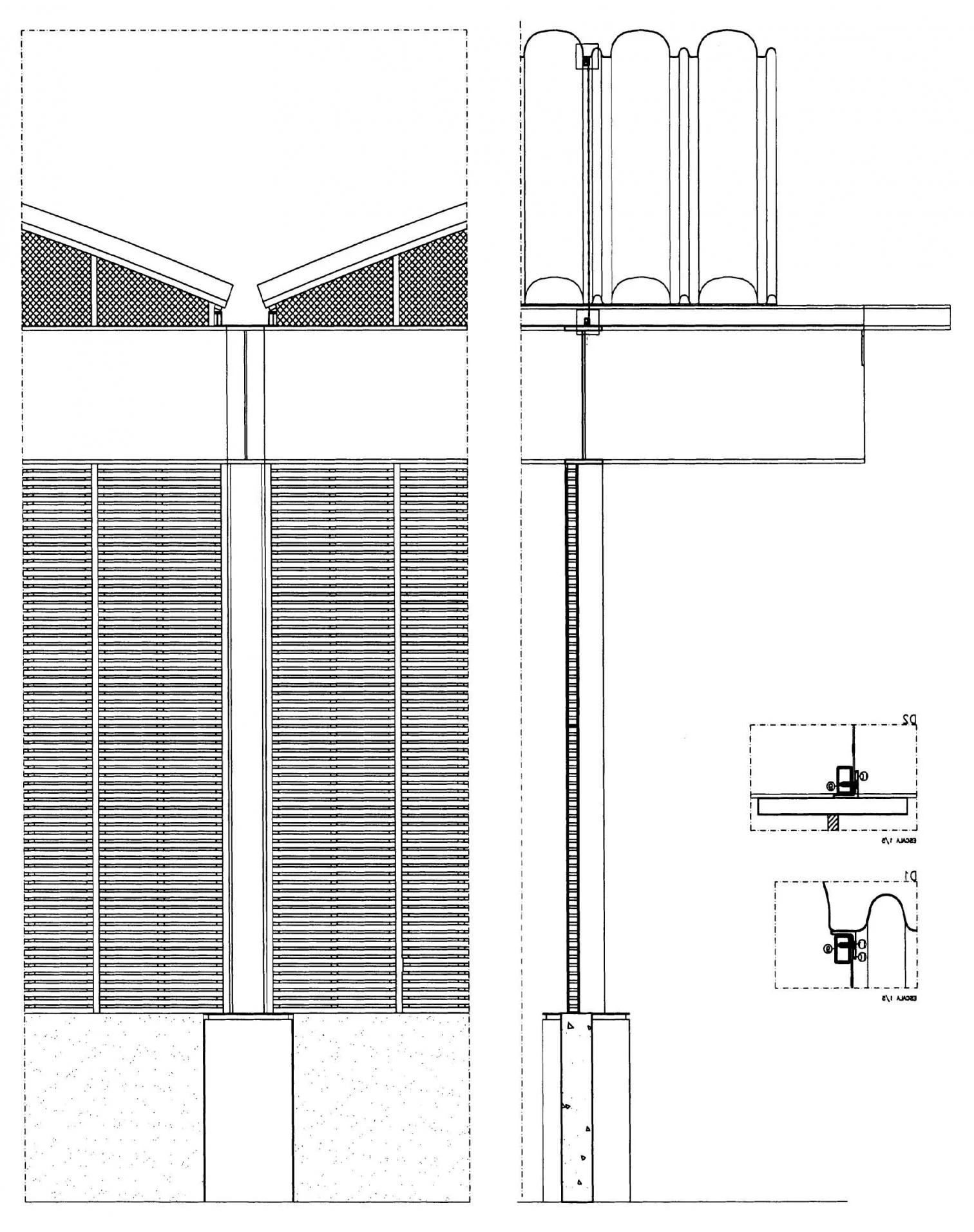 Como un filtro lumínico que asegura la ventilación permanente de las instalaciones —impidiendo además las incursiones de pájaros y otros animales— una celosía de madera de iroko cierra el perímetro del recinto bajo el gran baldaquino de chapa. A través del acristalamiento de la fachada norte, las vistas panorámicas de los campos cultivados se incorporan como fondo escenográfico a los restos arqueológicos, permitiendo imaginar el contexto en el que se levantó inicialmente la villa.