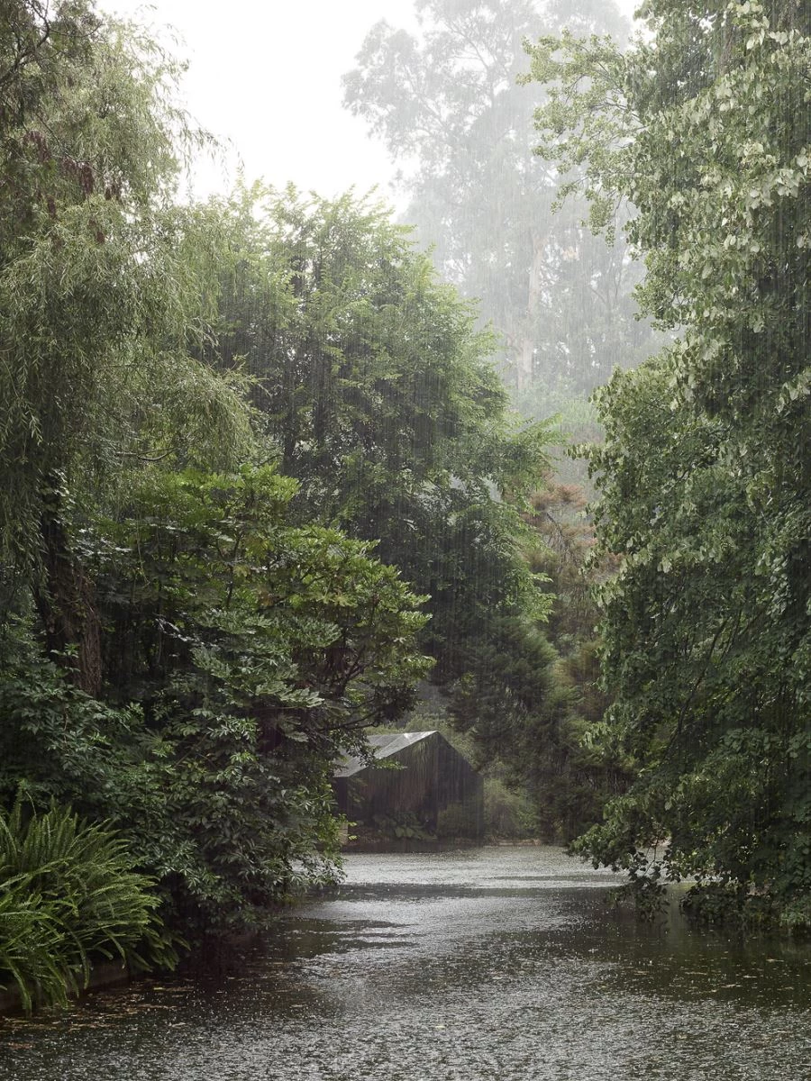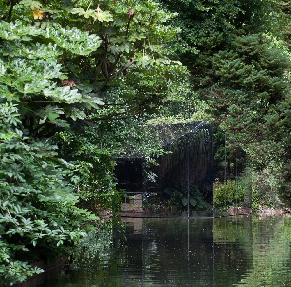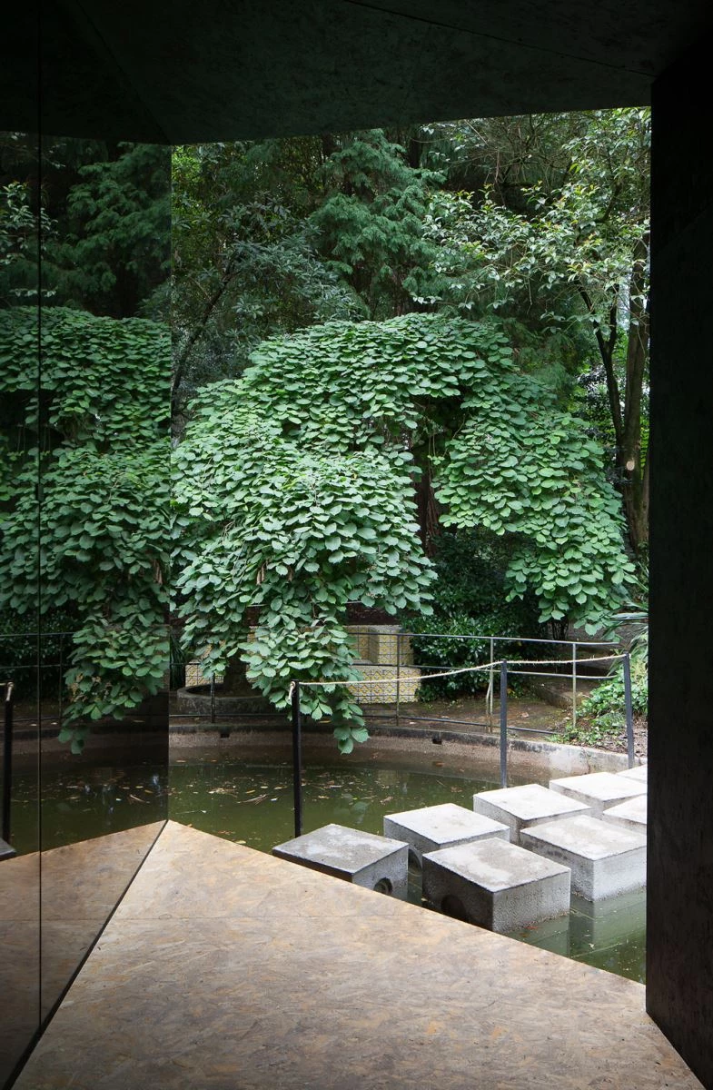 El nuevo pabellón de la Fundación Serralves, diseñado por depA Architects para acoger proyecciones audiovisuales, se entiende como una extensión del museo en cuanto a espacialidad y geometría. Su volumen se extrae del edificio principal y se modifica su materialidad para transportarnos a un mundo cargado de reflejos y texturas. Para conseguir estos efectos la ubicación es primordial. El pabellón se sitúa a la orilla de un lago de aguas oscuras que sirven de espejo y se camufla entre una densa vegetación. La envolvente del pabellón es de vidrio y sus interiores curvos se resuelven con materiales que lo aíslan acústicamente para favorecer la experiencia del visitante.