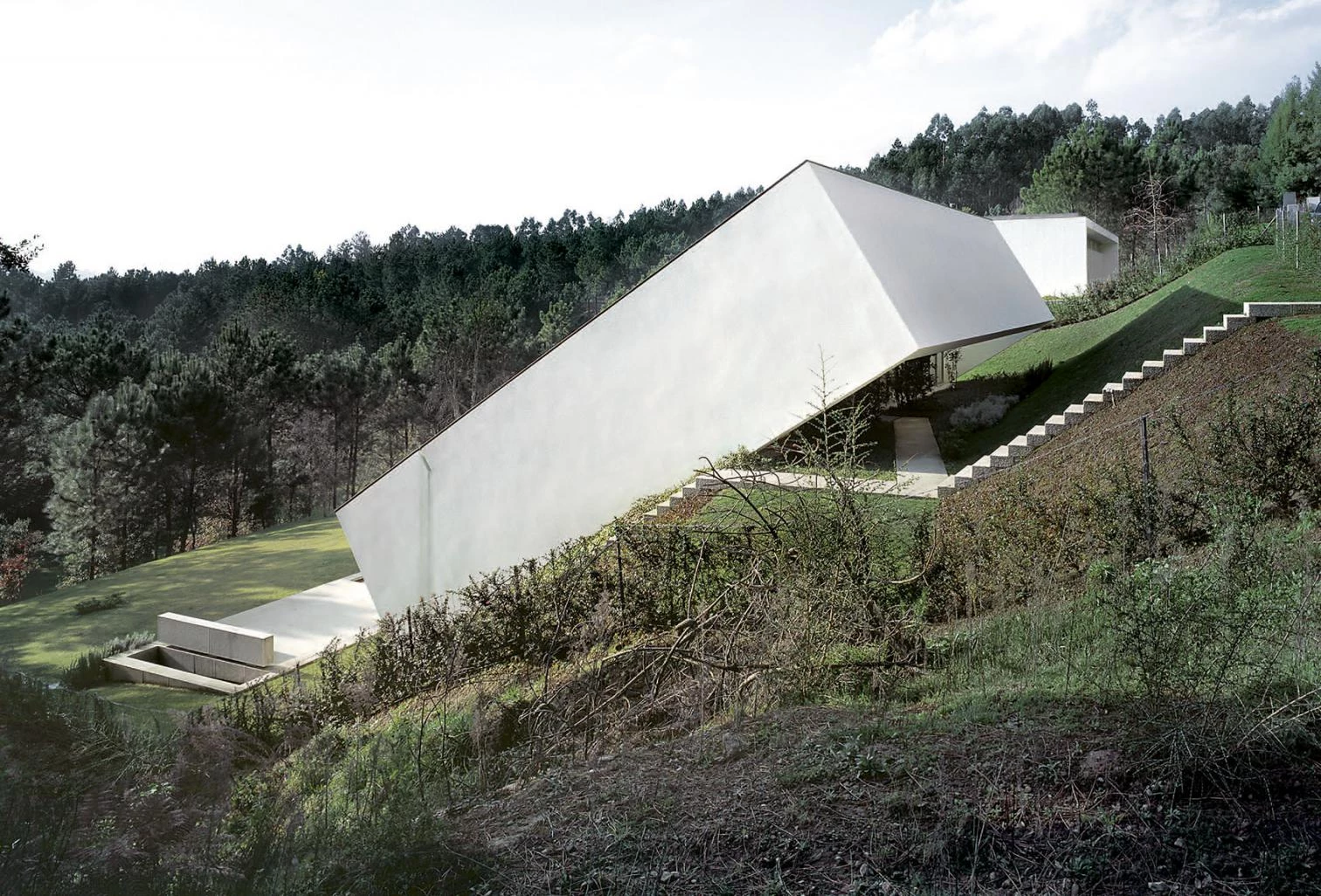 Muy cerca de la frontera con España, el municipio portugués de Ponte de Lima constituye el destino vacacional de numerosas familias que pasan allí fines de semana o temporadas más largas. En las afueras de este enclave turístico, que recibe el nombre de su puente romano de veintisiete arcos y que cuenta con abundantes espacios naturales bien conservados, dos miembros de la misma familia adquirieron sendas parcelas contiguas en un terreno con fuerte pendiente, buenas vistas y orientación este-oeste, con el fin de levantar en ellas sus respectivas residencias de verano.