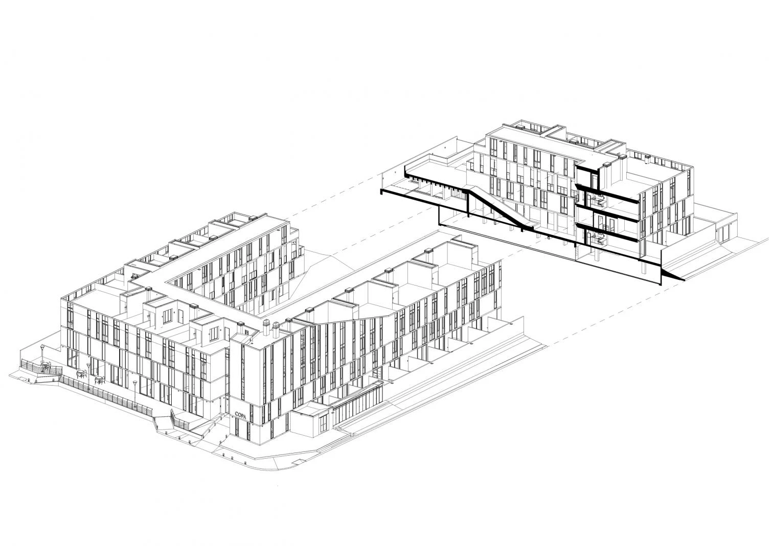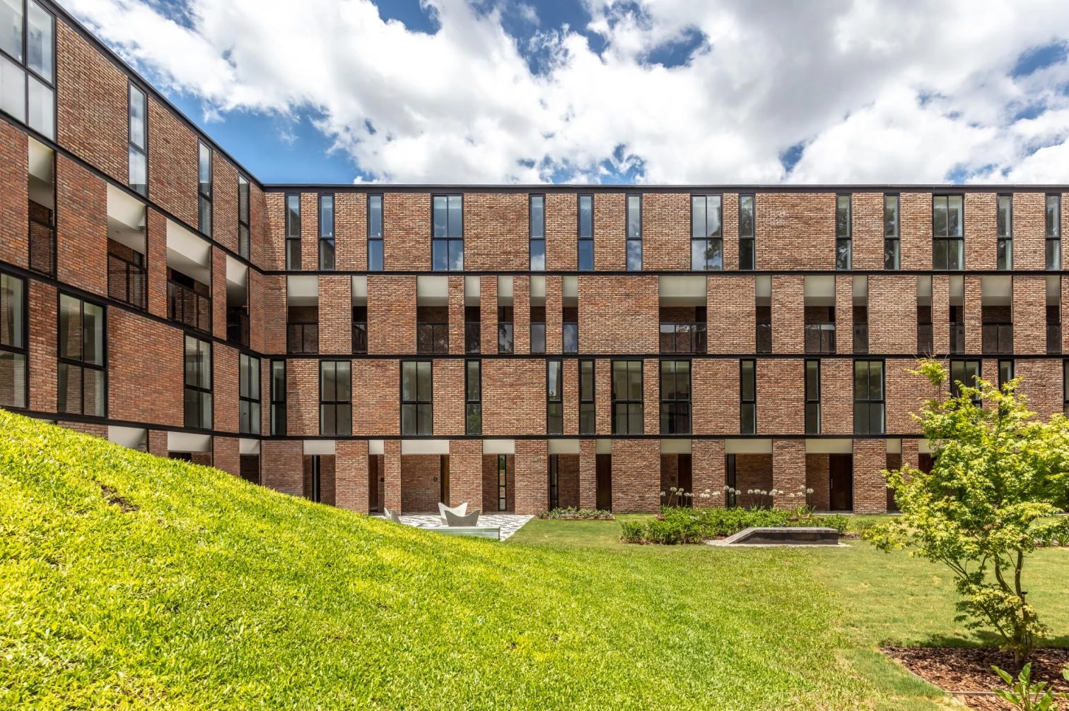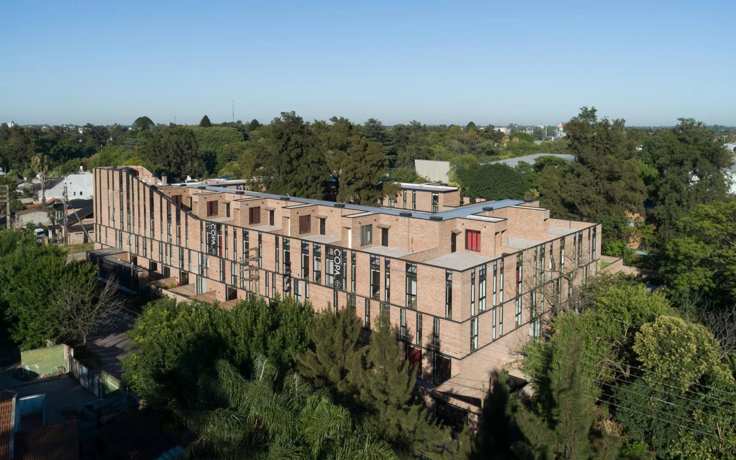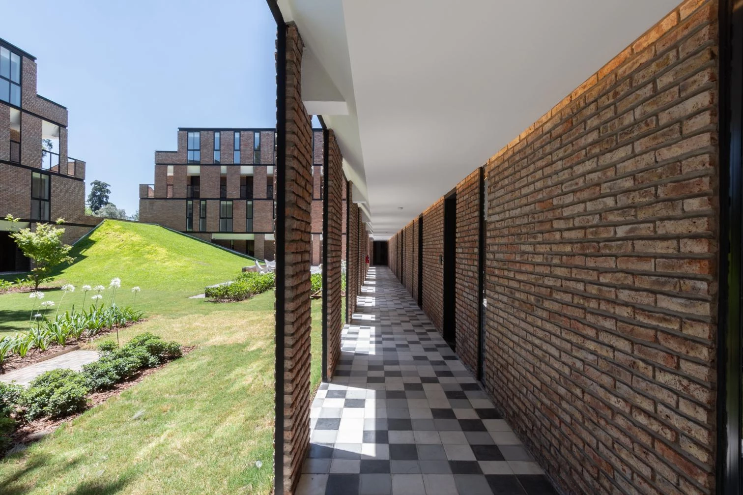 En la ciudad de Moreno, situada en la provincia de Buenos Aires, se encuentra este conjunto residencial, obra de la firma argentina MCL Studio, liderada por Juan Micieli. Con una superficie construida de 7.200 metros cuadrados, el edificio está organizado en torno a un claustro central, concebido como un espacio de encuentro, que abraza la vegetación existente y al que se abren las galerías de circulación. La esquina norte está desmaterializada para permitir que la luz solar inunde el espacio central. El ladrillo con diferentes cocciones se utiliza en la obra explotando sus cualidades expresivas. El sistema constructivo elegido —con muros dobles, dobles vidrios herméticos y galerías en forma de alero— permite reducir considerablemente las ganancias térmicas en períodos estivales y las pérdidas en periodos invernales, mejorando el rendimiento térmico del edificio.