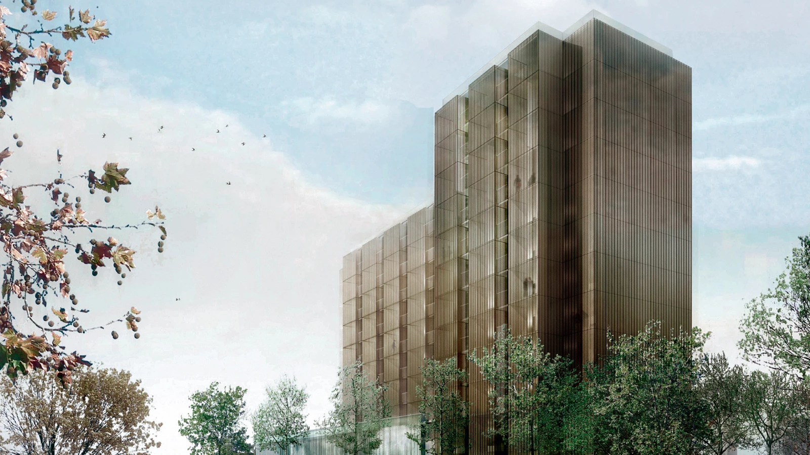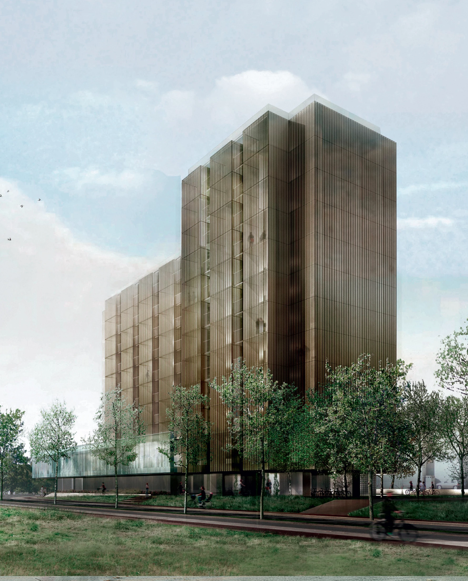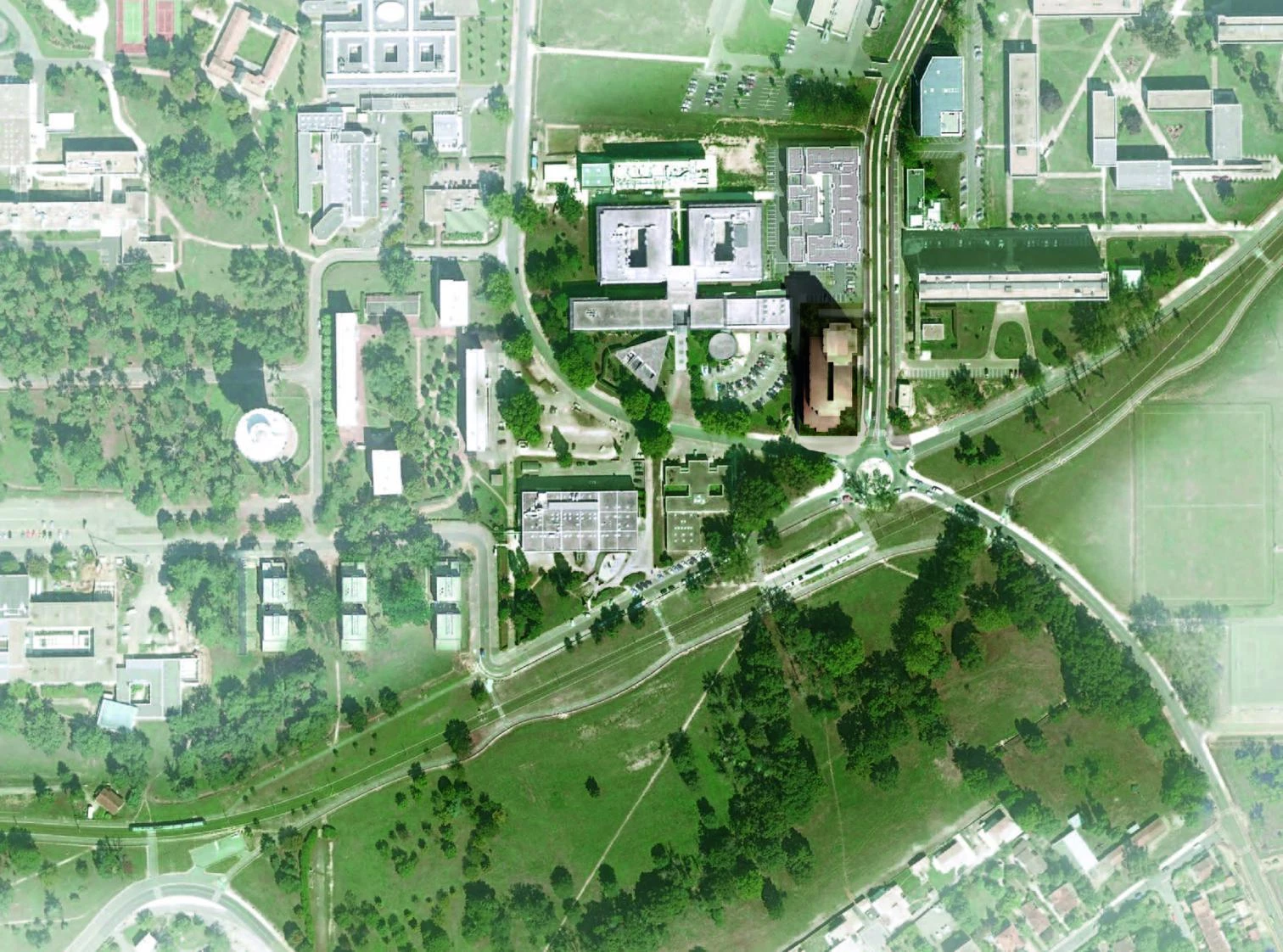 RCR ArquitectesEmplazado en el campus universitario de Pessac, en el extrarradio del área metropolitana de Burdeos, el edificio agrupa usos diversos para servir a las instalaciones universitarias repartidas por las inmediaciones. Esta variedad de usos se unifica a través de un atrio central, que reparte las comunicaciones del interior. Este espacio, acondicionado con vegetación y luz natural, funciona como punto de conexión del programa y ofrece zonas de reunión y encuentro para los usuarios, promoviendo un ambiente íntimo de convivencia. El programa, que ofrece residencia de profesores, doctorandos y estudiantes, aparcamiento, y un centro de salud, se reparte por tres volúmenes maclados que responden a la proximidad de los edificios vecinos y, en especial, a la cercanía de una estación de tranvía situada al sur del solar. El centro médico ocupa un volumen horizontal a pie de calle con dos niveles, que se abre hacia el sur buscando la conexión con el exterior y el flujo de personas desde el tren. La planta primera acoge también las zonas comunes de la residencia, situada en las plantas superiores. Un pasillo independiente da acceso a un conjunto de habitaciones en la zona norte, destinadas a estudiantes de doctorado y cuya extrusión vertical conforma el volumen de mayor altura del edificio.