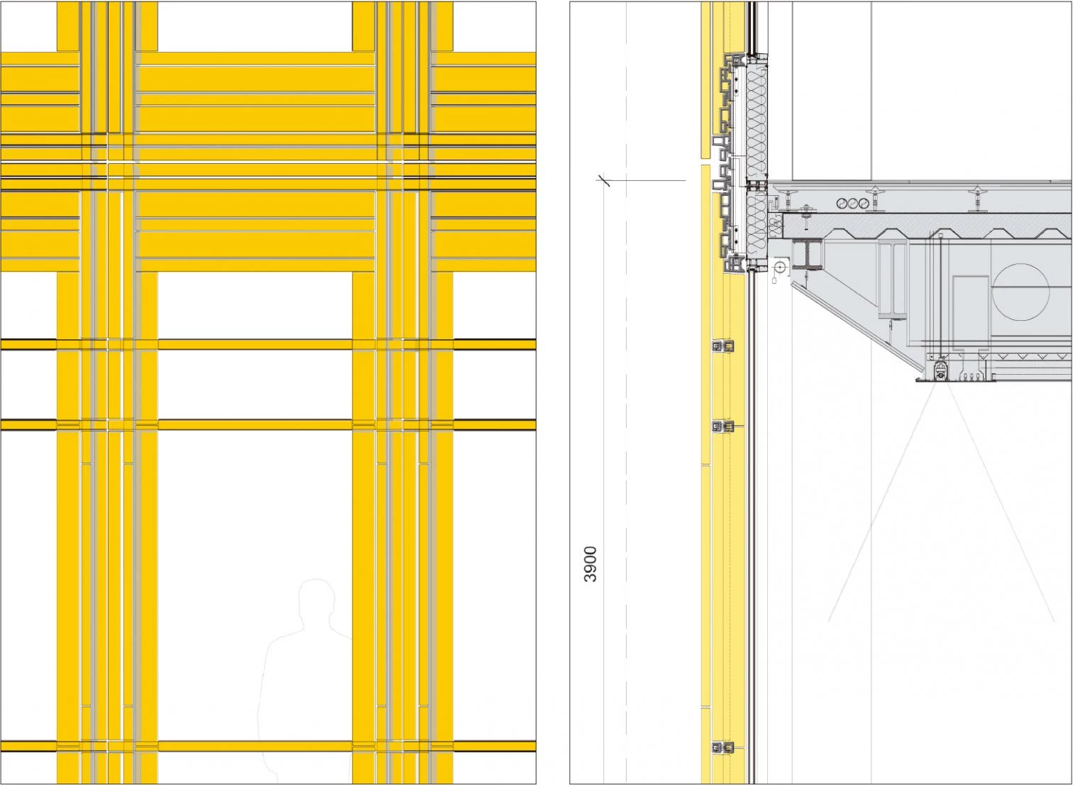 Con una superficie de más de 60.000 metros cuadrados —más del doble del antiguo complejo— el nuevo edificio está formado por dos bloques. El primero, de quince plantas y situado al oeste, alberga los usos residenciales, mientras que el segundo, de once alturas, orientado hacia el este y destinado a oficinas, se despliega en forma de herradura alrededor de un gran patio accesible desde el exterior, que constituye el corazón simbólico y funcional de la pieza, y da cuenta de su vocación de regenerar el espacio urbano del entorno.