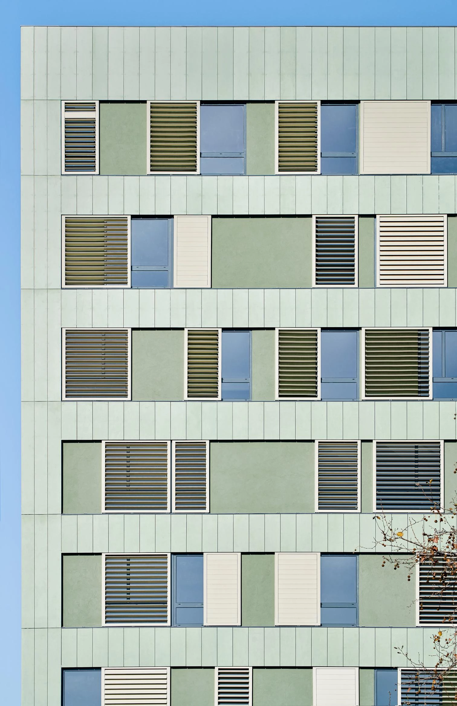 En cuanto al comportamiento energético, se ensaya un modelo de sostenibilidad pasiva sustentado en el diseño arquitectónico, tanto espacial como material, que pretende el ahorro de energía consumida pero también demandada, así como la reducción de la huella de carbono de los materiales desde su origen hasta la puesta en obra y vida futura. Recursos como la ventilación cruzada aprovechando las diferencias de temperatura entre las fachadas exteriores y el patio, y la disponibilidad de luz natural en ambas fachadas garantizan el confort y el ahorro energético. Estas medidas se apoyan en complementos tecnológicos de última generación, como redes de instalaciones bien calibradas en todo el edificio, un sistema de aerotermia y radiadores de baja temperatura, y paneles fotovoltaicos que cubren la iluminación de todos los espacios comunes. Por todo ello, el edificio ha obtenido el Nivel A de Certificación Energética.[+][+][+][+]