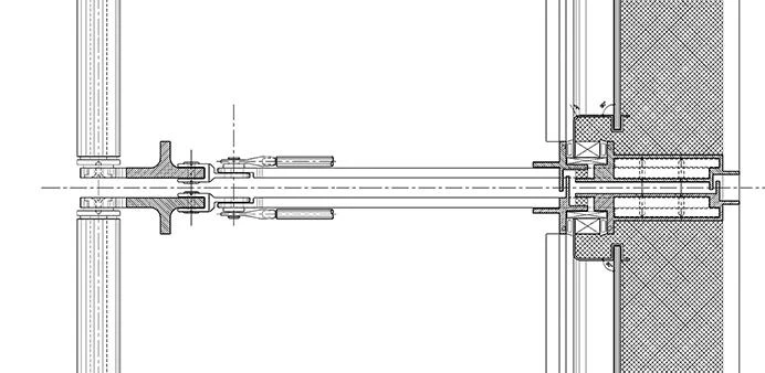 La piel cerámica se extiende 32 metros más allá de la altura de la cornisa interior: en el remate, las varillas cerámicas se van separando progresivamente de tal modo que la pantalla parece ir disolviéndose poco a poco conforme crece en altura. La torre se corona con un mástil de 91 metros de longitud.